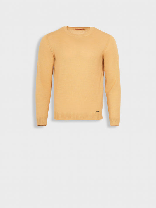 Alaska sweater in yellow tone, designed in a solid color with a round neckline. The...