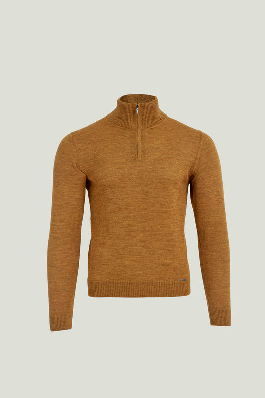 Albert Sweater in yellow tone, featuring a high collar and partial zipper. Crafted from baby...