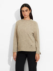 Zia Sweater in beige tone, designed in solid color with a round neck, hammer sleeve, and openings on the sleeves. Crafted from baby alpaca, it offers warmth and exceptional softness. | Predominant material: Baby Alpaca