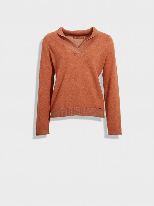 Zolena Sweater in orange tone, featuring a ribbed "V" neckline. Crafted from a blend of...