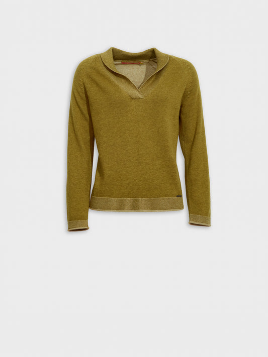 Zolena Sweater in green tone, featuring a ribbed "V" neckline. Crafted from a blend of...
