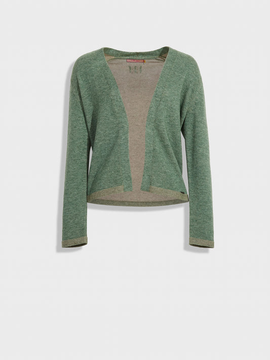 Zoraya Cardigan in green tone, with an open design, no buttons or closures, and a...