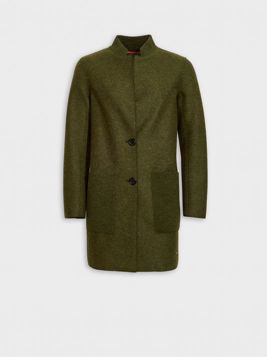 Zybil Coat in green tone, featuring an unlined design and a mao collar. It showcases...