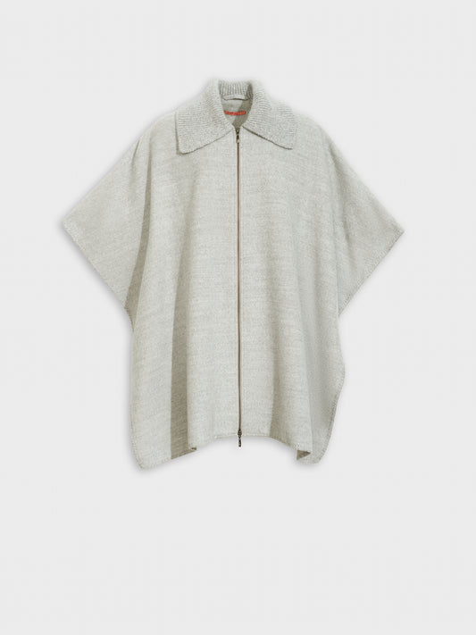 Zoila Poncho in beige tone, featuring a wide ribbed collar that complements its loose silhouette...