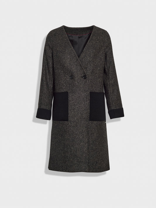 Zadig Coat in black tone, distinguished by its relaxed, open-front cut and side seam pockets....