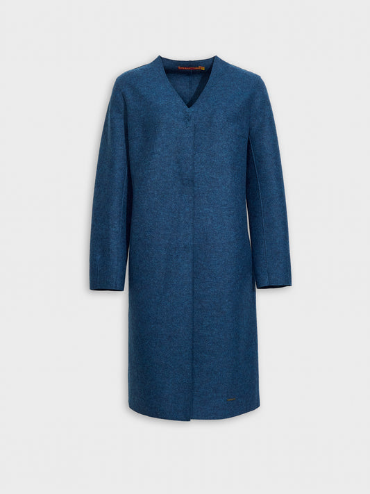 Zingaro Coat in light blue tone, crafted from felted fabric without lining. It features a...