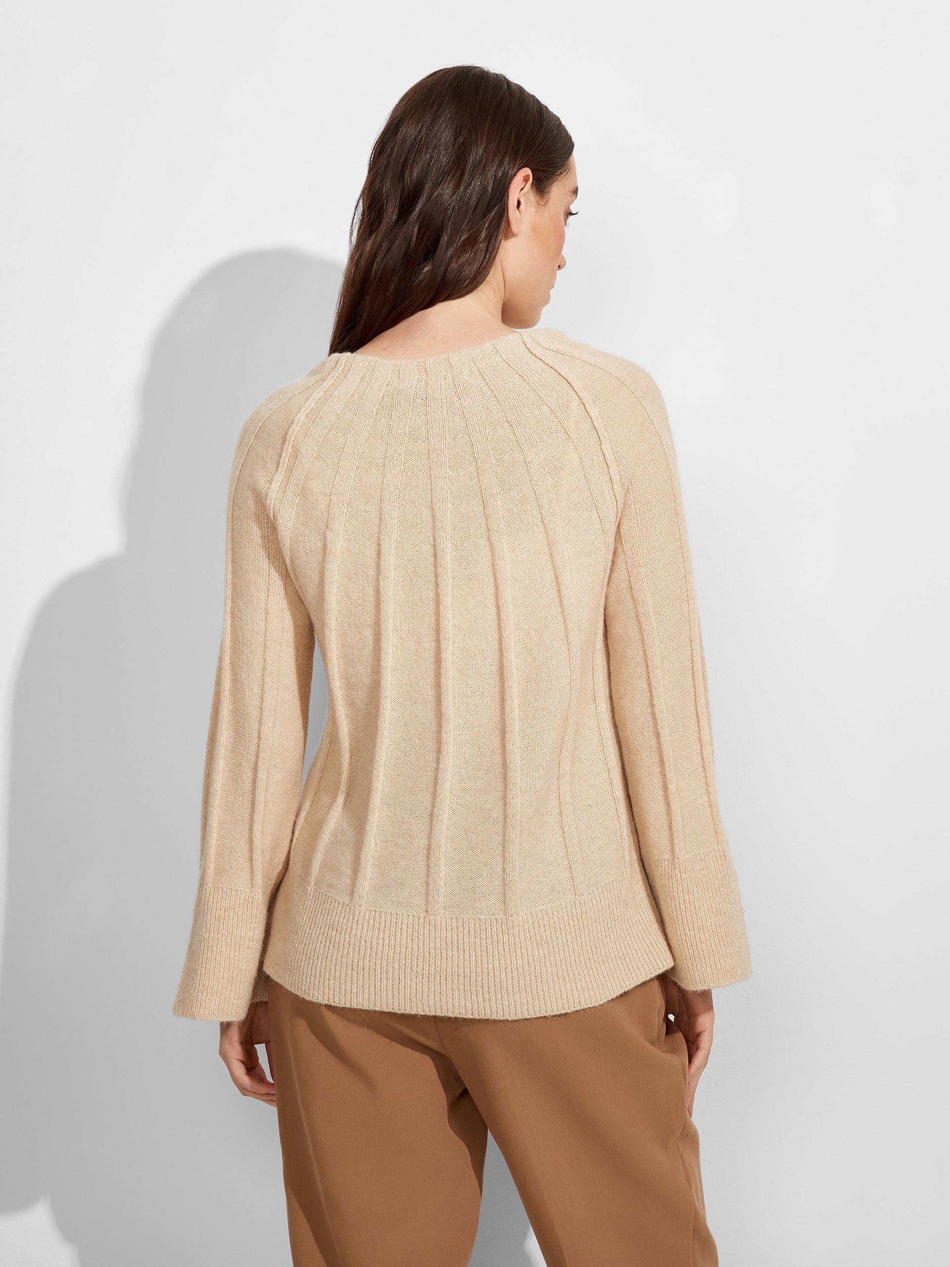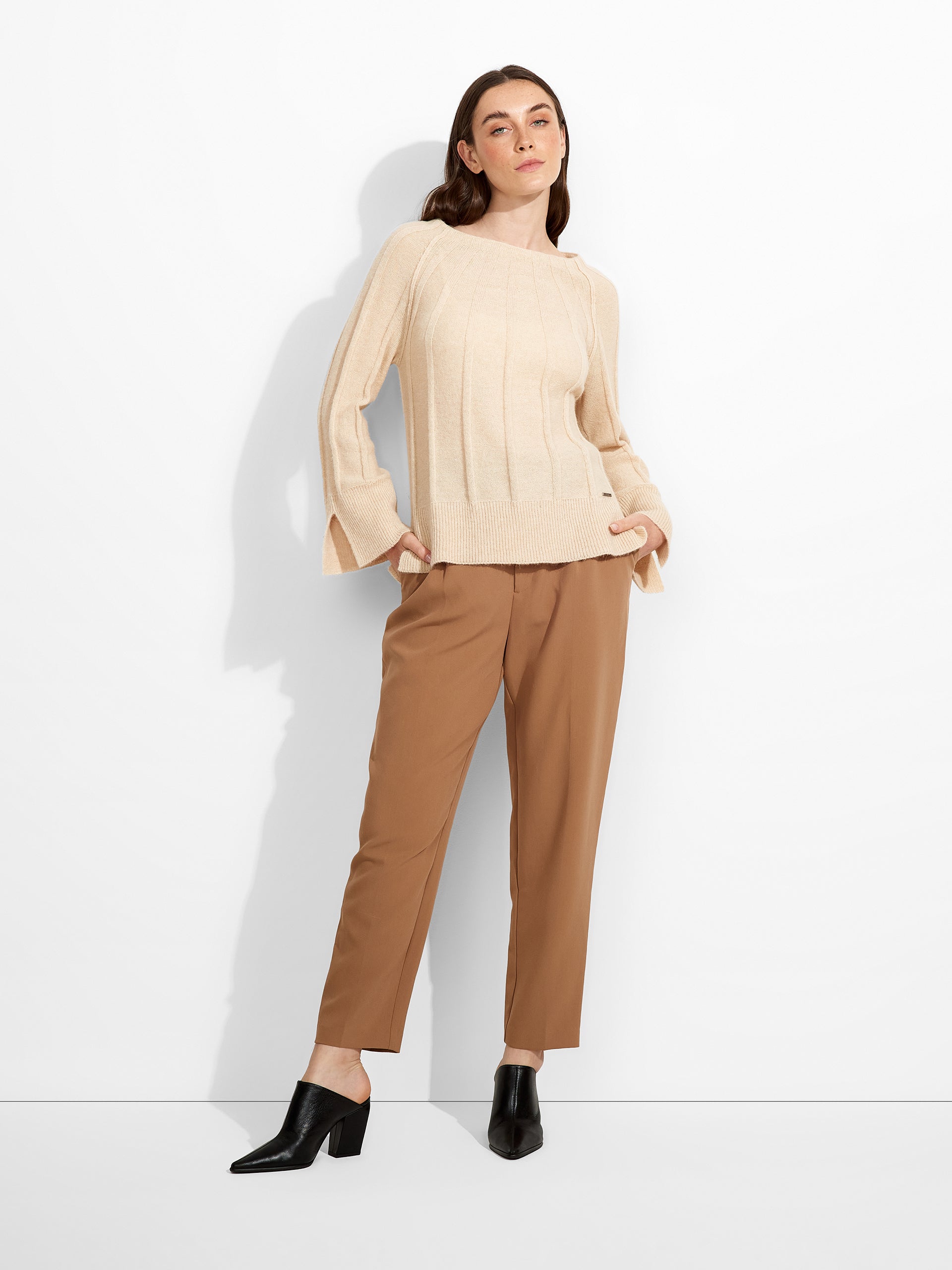 Zephir Sweater in beige tone, with a loose silhouette, round neck, and openings on the sleeves. Crafted from baby alpaca, it offers warmth and exceptional softness. | Predominant material: Baby Alpaca
