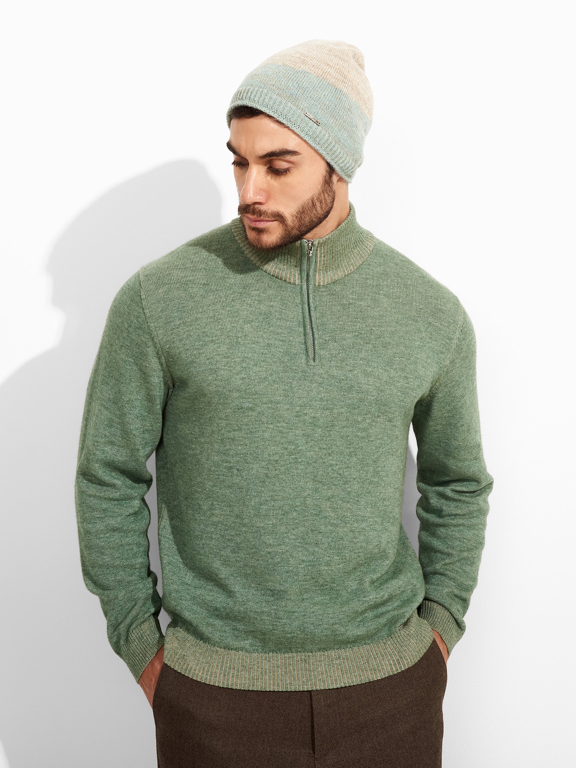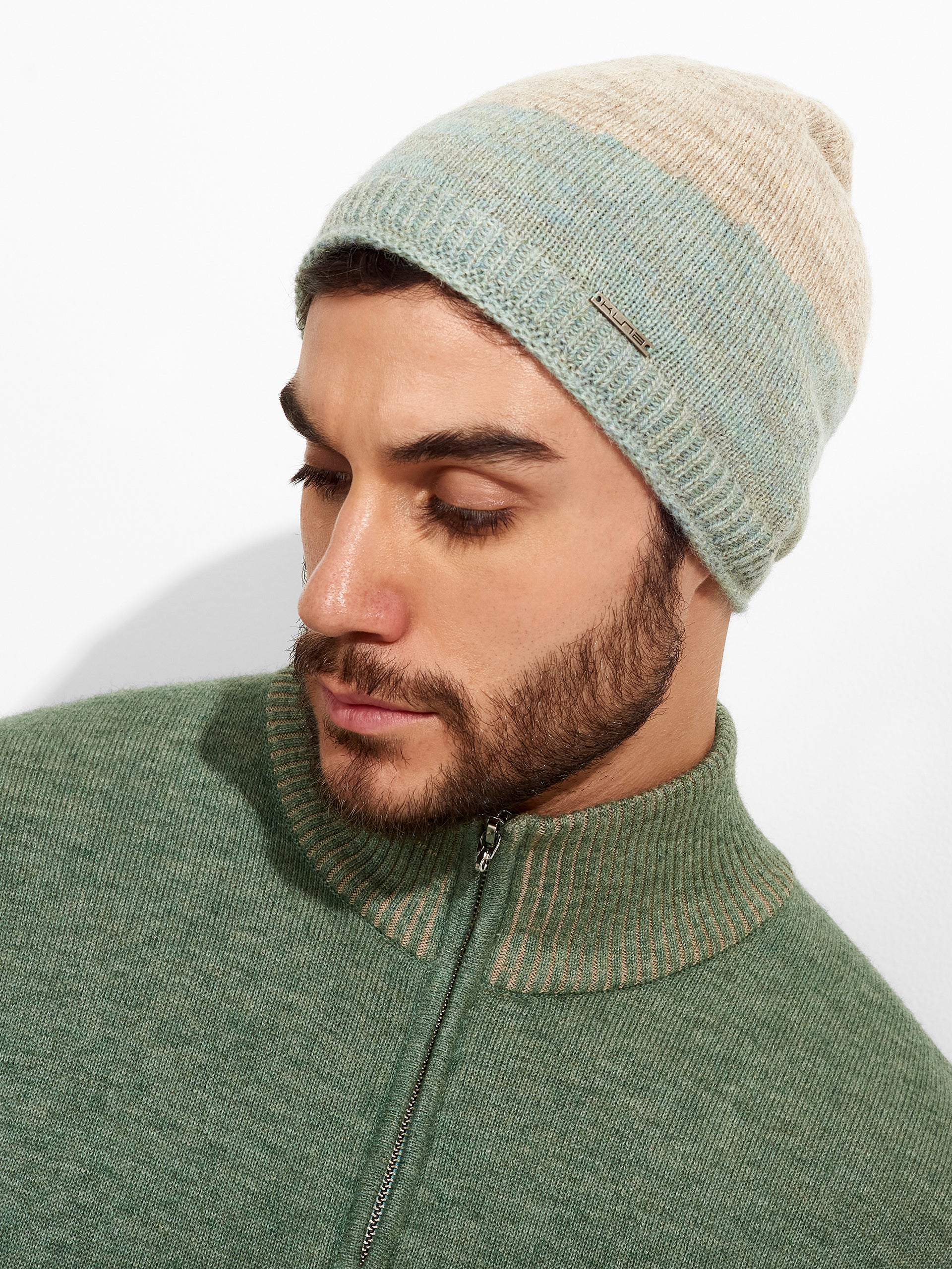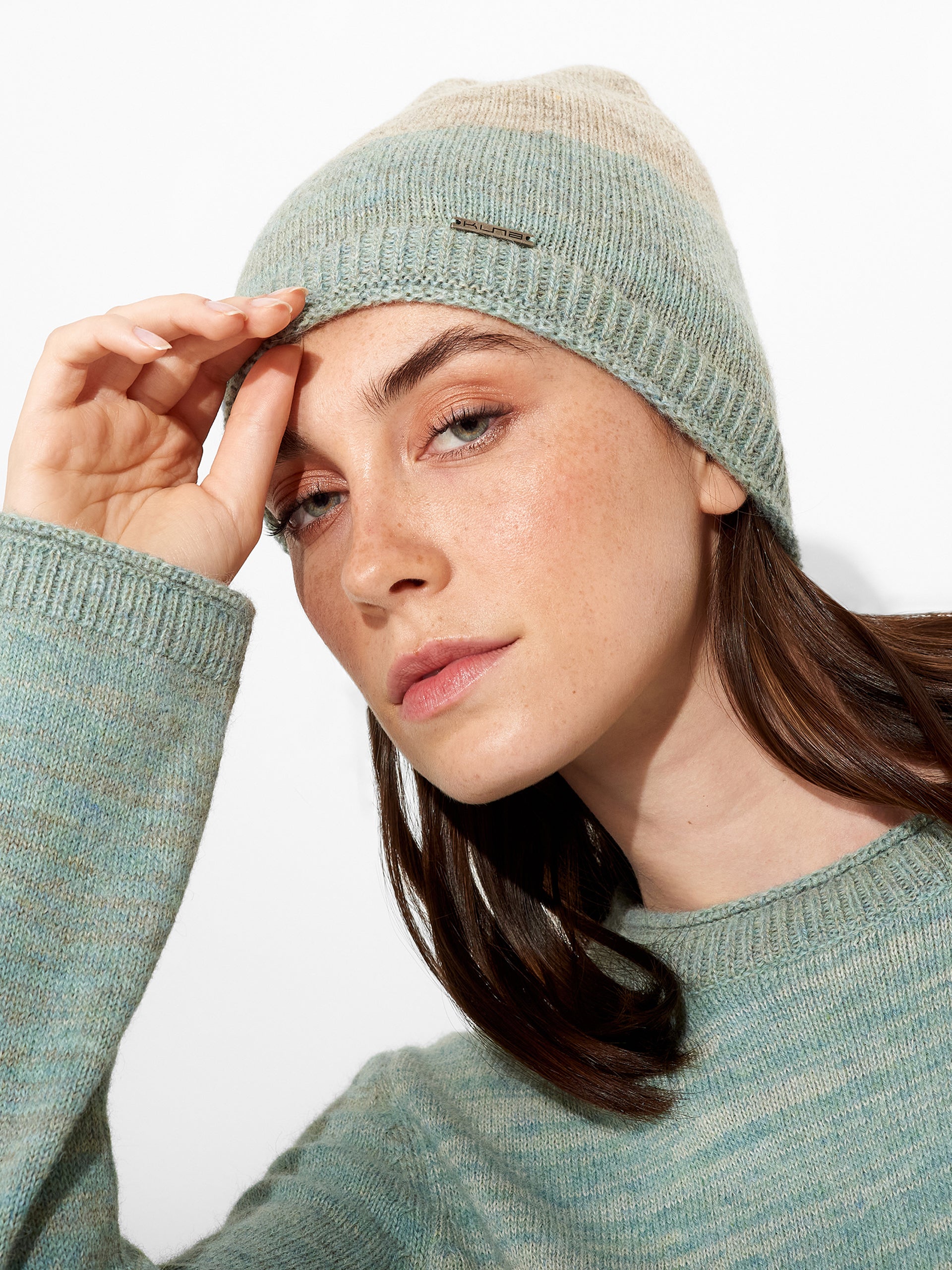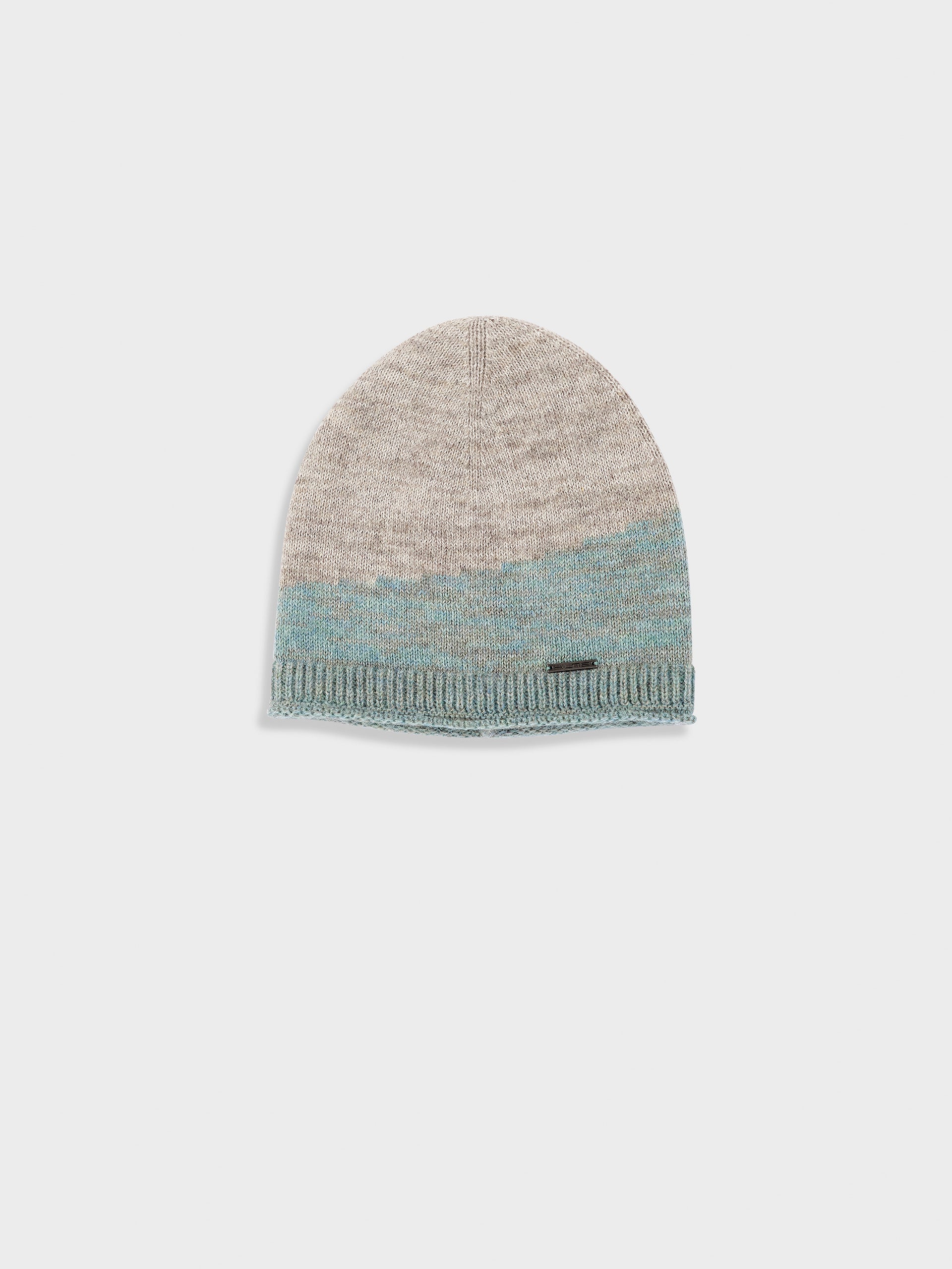 Zoe Hat in light blue tone, knitted in a textured stitch with a smoother, more uniform finish. Its design fits comfortably on the head. Crafted from baby alpaca, it offers softness and warmth. | Predominant material: Baby Alpaca