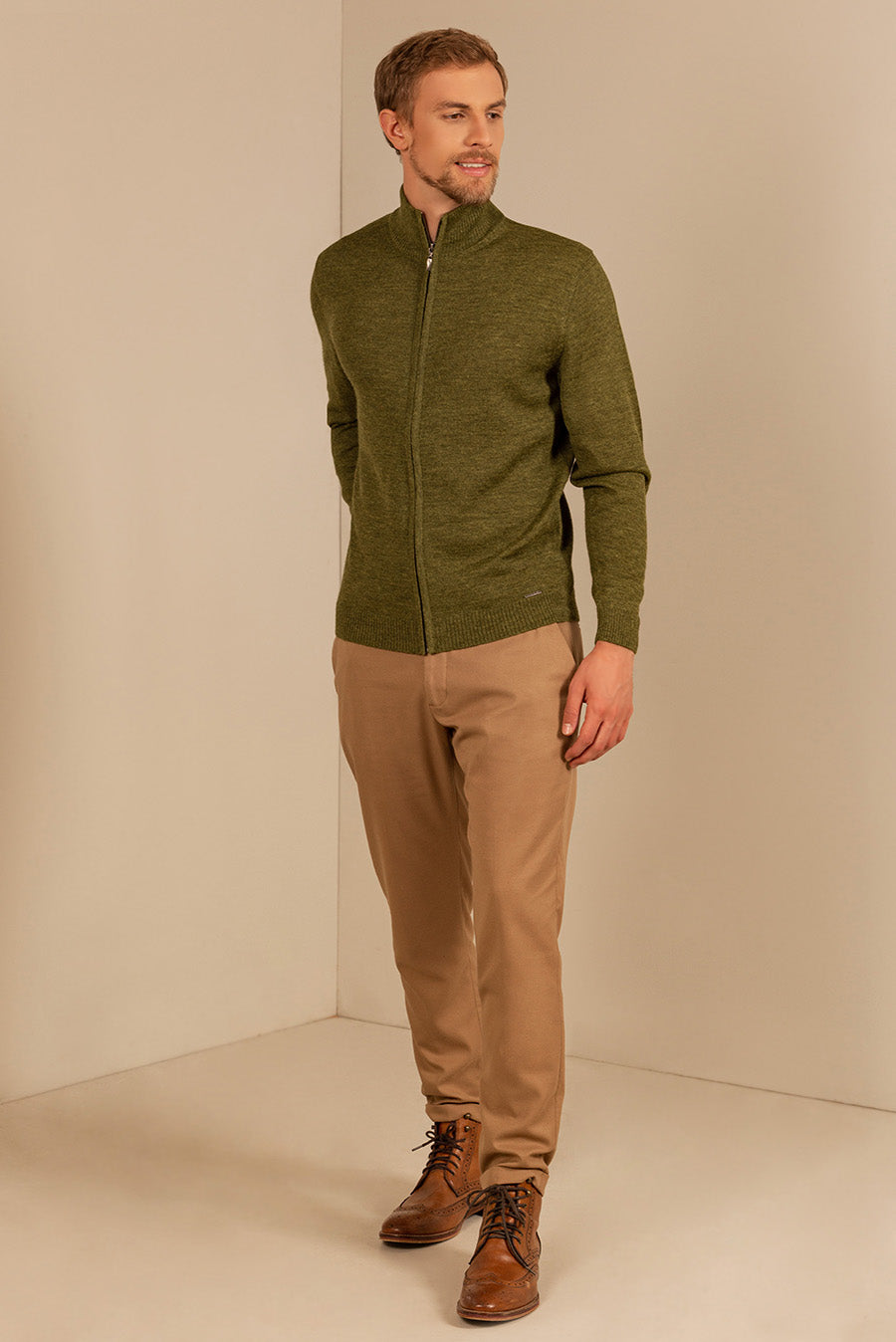 Men's cardigan made of 100% baby alpaca, can be used as a sweater or also as a jacket, thanks to its zipper. This garment is among the range of indispensable items that can be worn all year round.