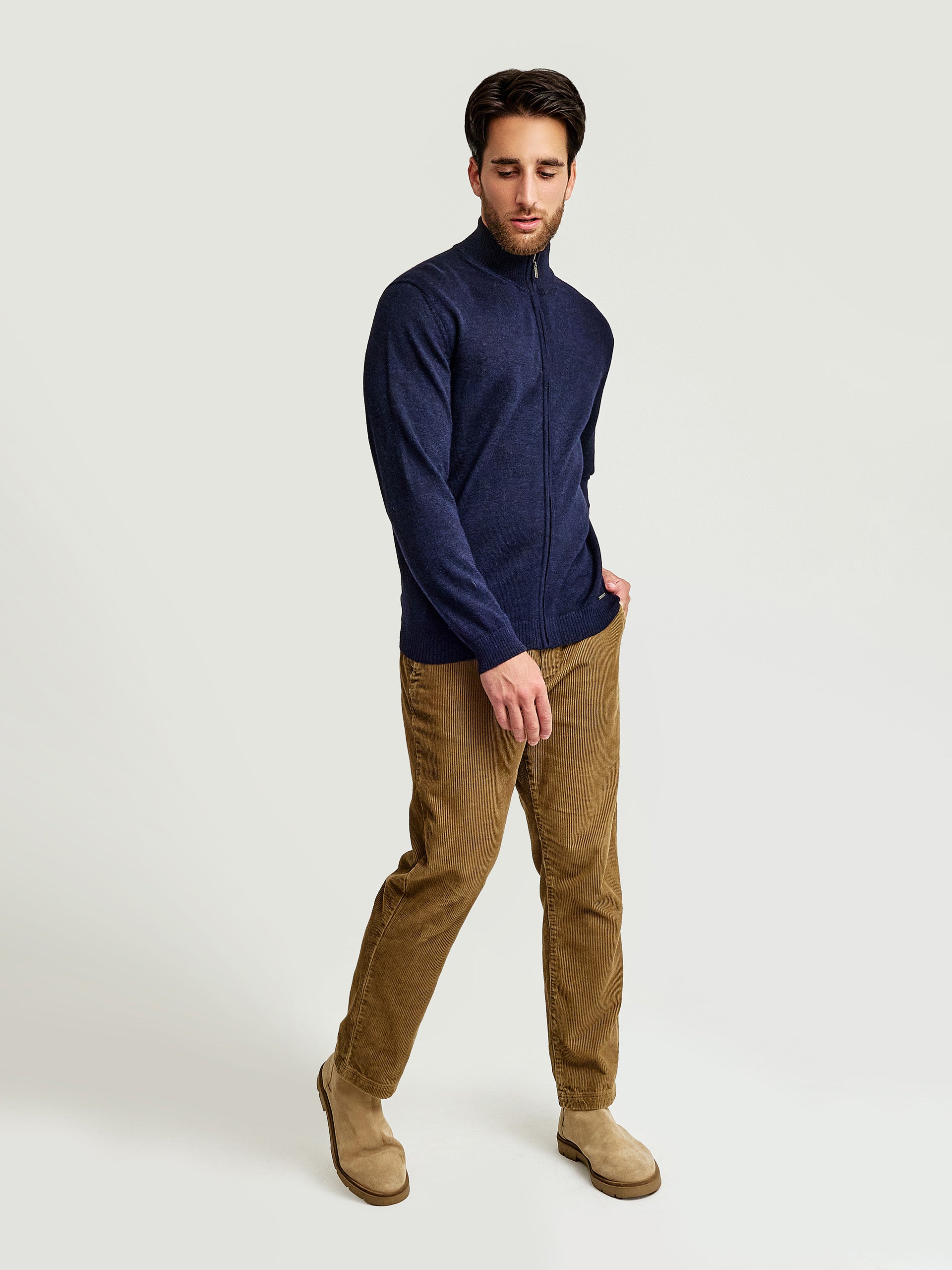 Men's cardigan made of 100% baby alpaca, can be used as a sweater or also as a jacket, thanks to its zipper. This garment is among the range of indispensable items that can be worn all year round.
