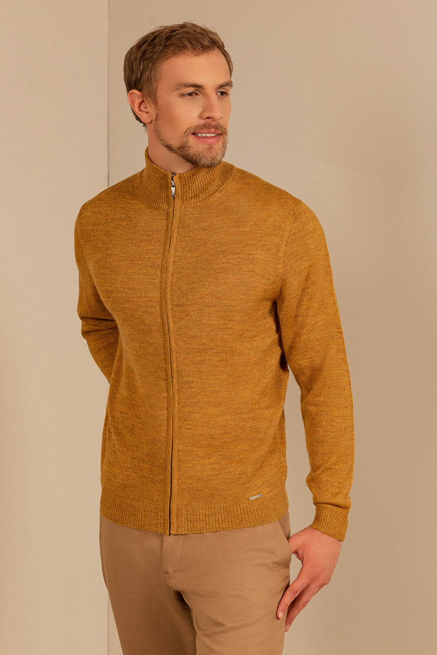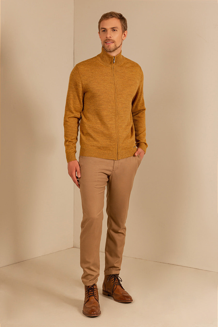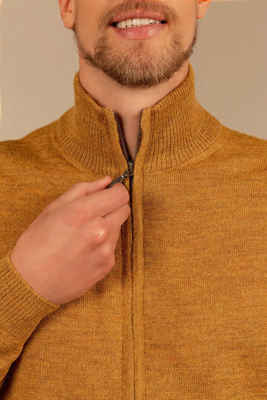 Men's cardigan made of 100% baby alpaca, can be used as a sweater or also as a jacket, thanks to its zipper. This garment is among the range of indispensable items that can be worn all year round.