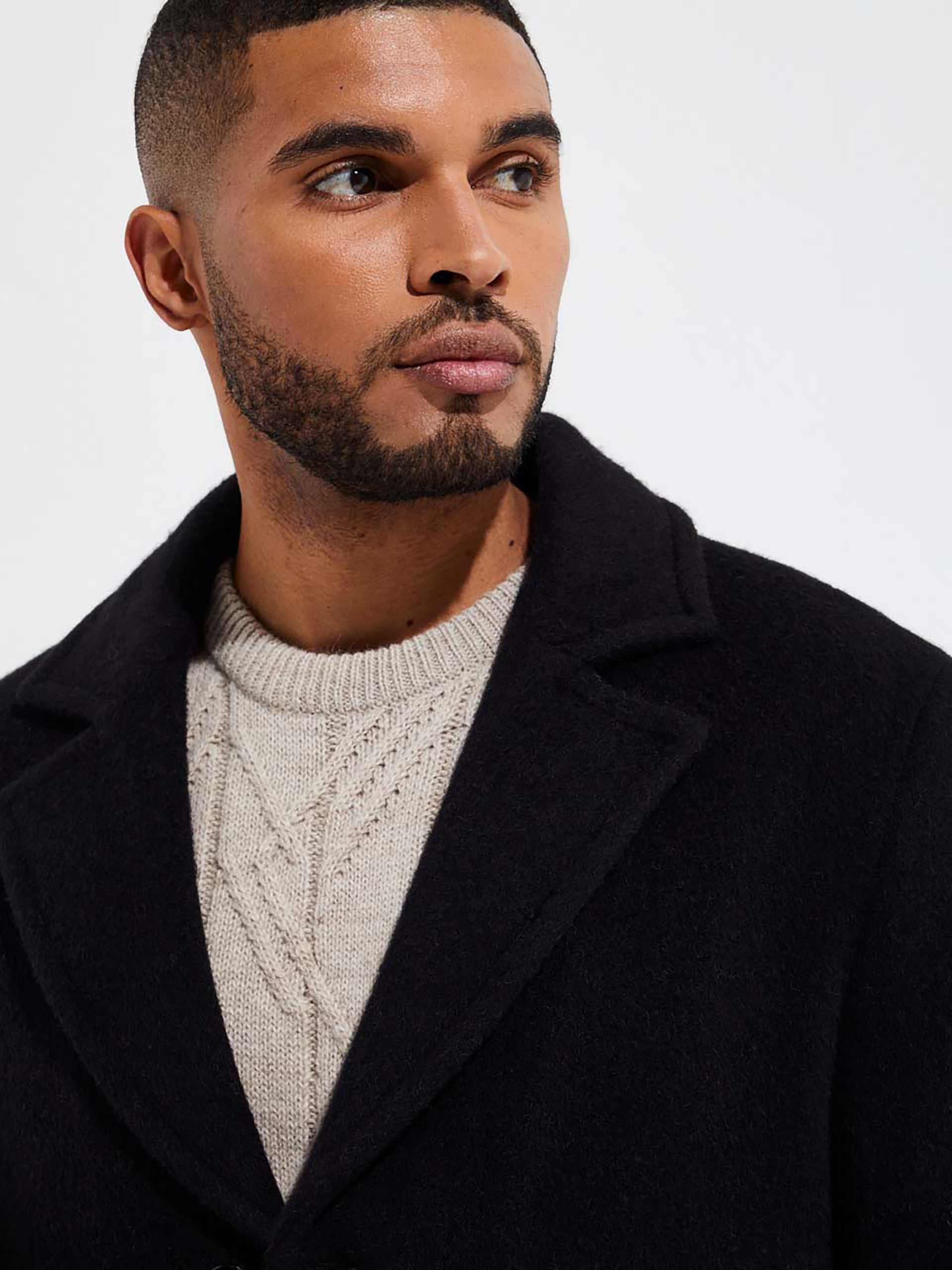 With the Ydalgo overcoat, you always get it right. The buttons in the central part add a special touch to this garment. It has a wide collar and a relaxed cut, made of baby alpaca and wool for warmth and style. A perfect choice to look fashionable and comfortable on any occasion!