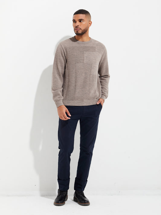Zar Sweater in beige tone, featuring an irregular line design and round neck. It showcases...