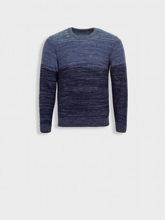 Zodiac Sweater in blue tone, designed with a knit fabric featuring a horizontal gradient effect....