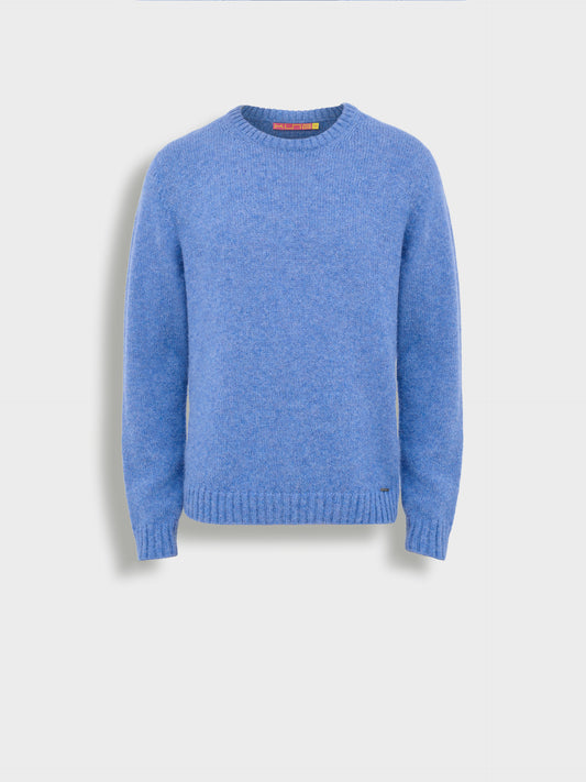 Alaska sweater in blue tone, designed in a solid color with a round neckline. The...