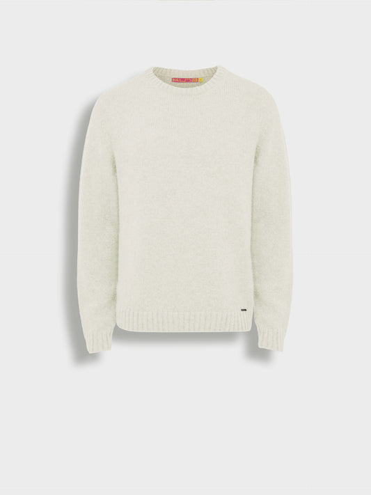 The Ygnacio sweater, with a round neckline, is made with organic cotton and baby alpaca...