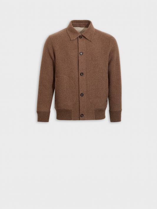 Zack Jacket in beige tone, reversible with horn buttons at the front, a yoke, and...