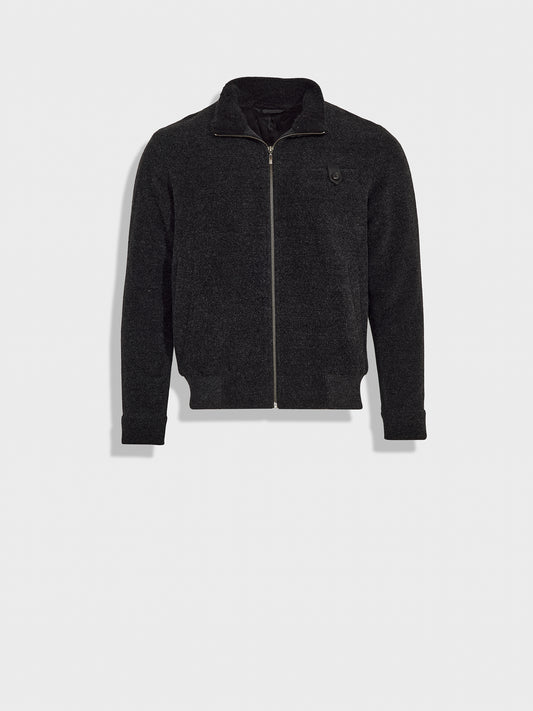 Zermatt Jacket in black tone, featuring a bomber design with a metallic zipper and side...