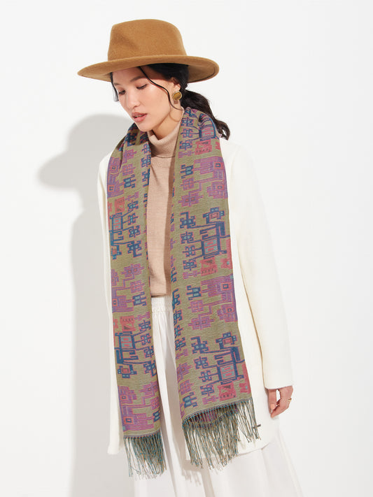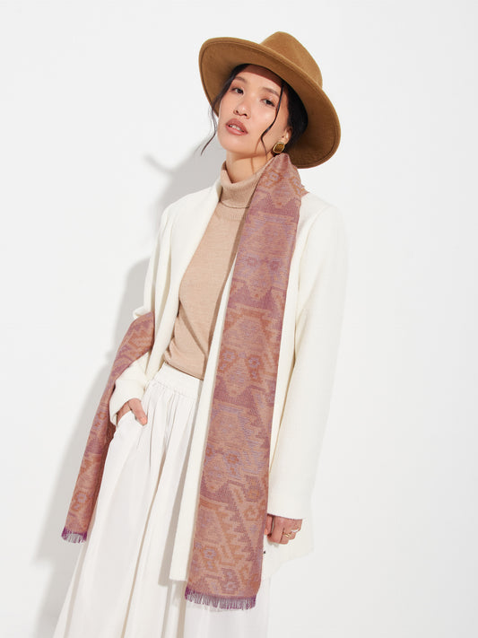 Chancay 36 scarf in fuchsia, made from 100% baby alpaca using a double-sided Jacquard technique....