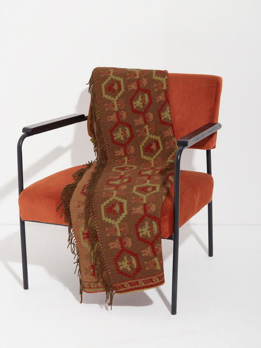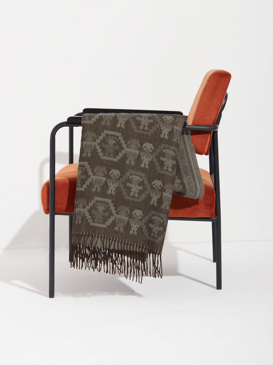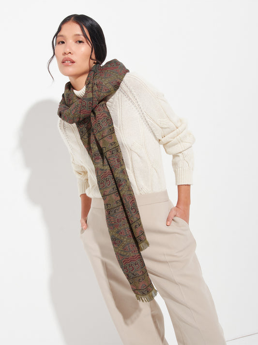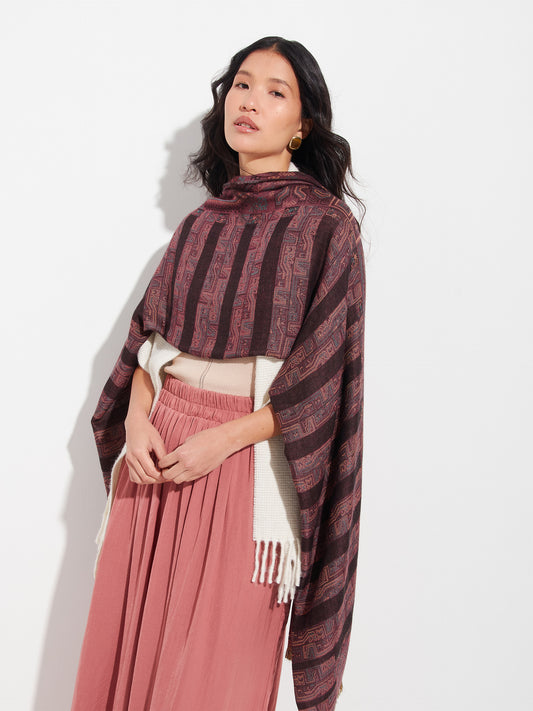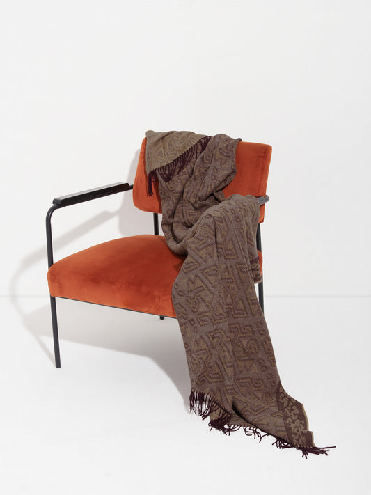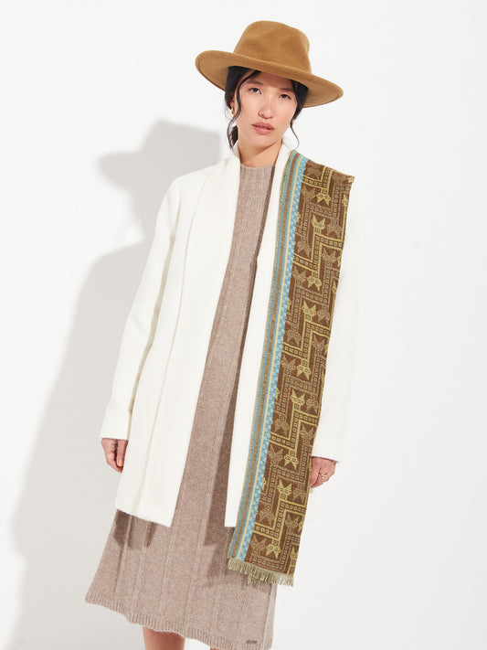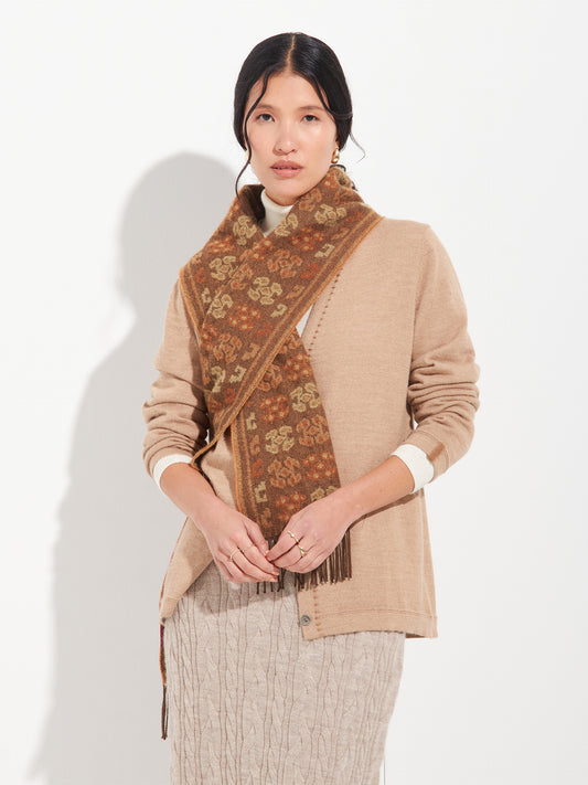 Chancay 36 scarf in brown, made from 100% baby alpaca using a double-sided Jacquard technique....