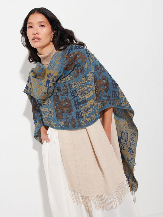A 100-year tribute to Museo Larco and Peru’s millenary textile legacy: jacquard pieces in baby alpaca and silk, featuring faithful mantle replicas and contemporary reinterpretations of ancestral motifs.