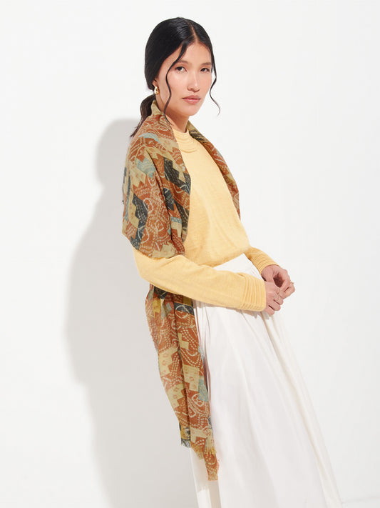 Lambayeque 8 stole in yellow, made from 50% Royal alpaca and 50% silk, using the...