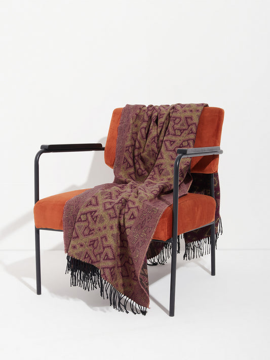 Chincha 2 blanket in red, made from 100% baby alpaca using a double-sided Jacquard technique....