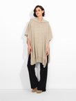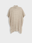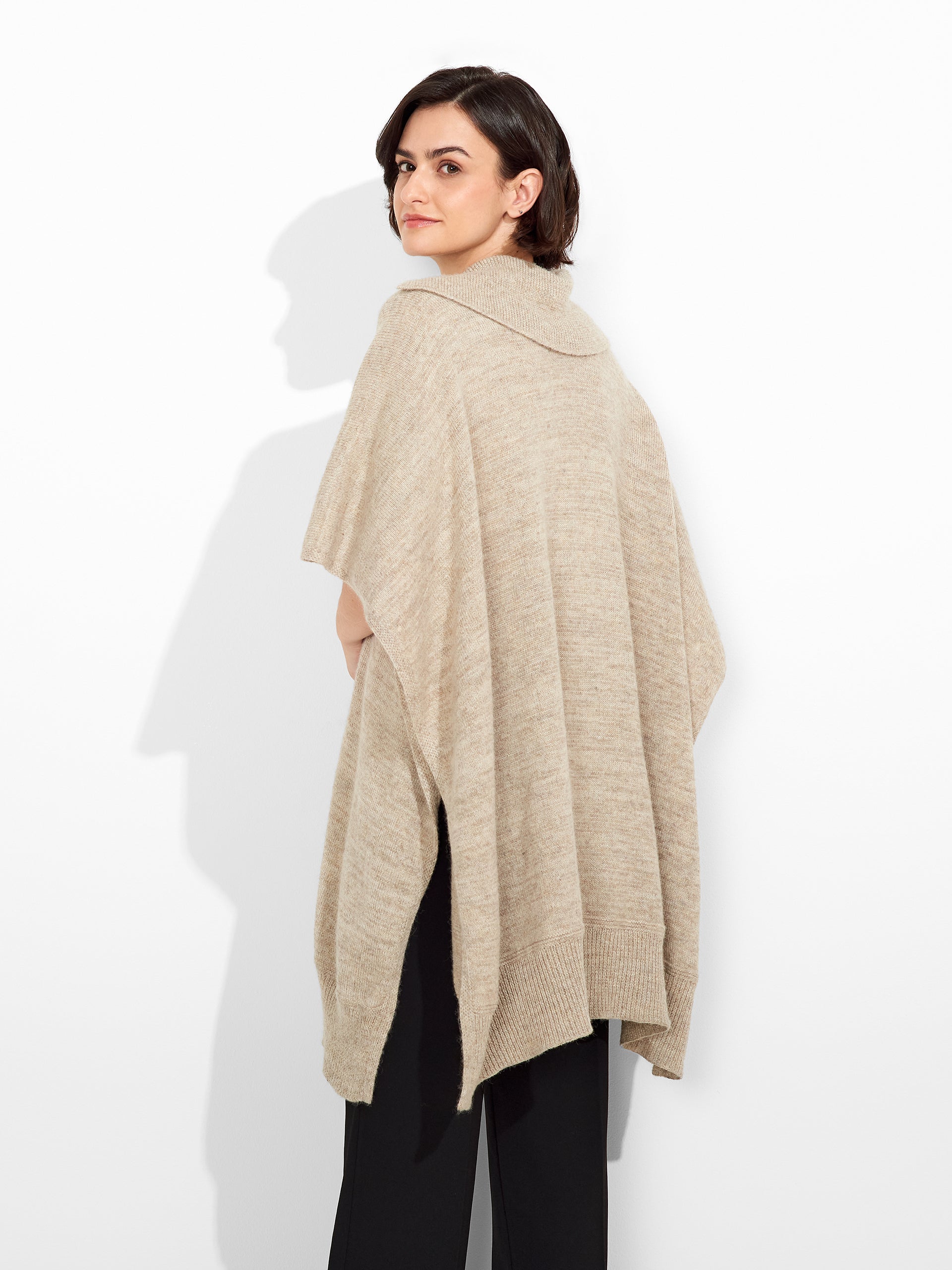 Zoila Poncho in beige tone, featuring a wide ribbed collar that complements its loose silhouette and open cut in a solid color. Crafted from baby alpaca, it offers warmth and softness. | Predominant material: Baby Alpaca