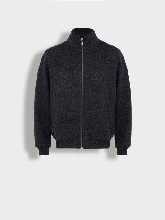 Alois jacket in grey color, made of baby alpaca and wool. It has metal zipper,...