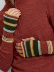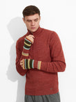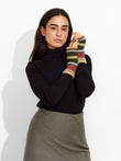 Zanni Gloves in red tone, featuring horizontal stripes that add a distinctive style. They offer a snug fit. Crafted from baby alpaca, they provide softness, warmth, and comfort. | Predominant material: Baby Alpaca