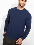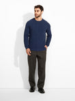 Zeus Sweater in blue tone, designed with a round neck, raglan sleeves, and structured knit. Crafted from a blend of cotton and baby alpaca. | Predominant material: Cotton