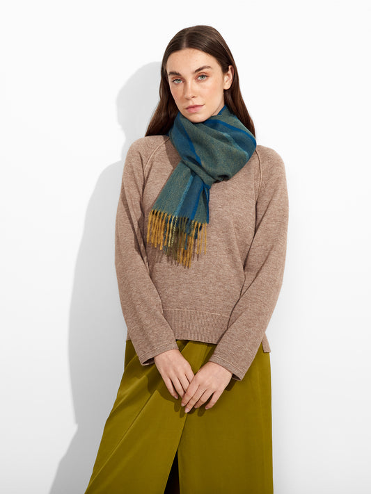 Tundra Scarf in green tone, featuring a double-faced design that highlights two dominant colors. Finished...