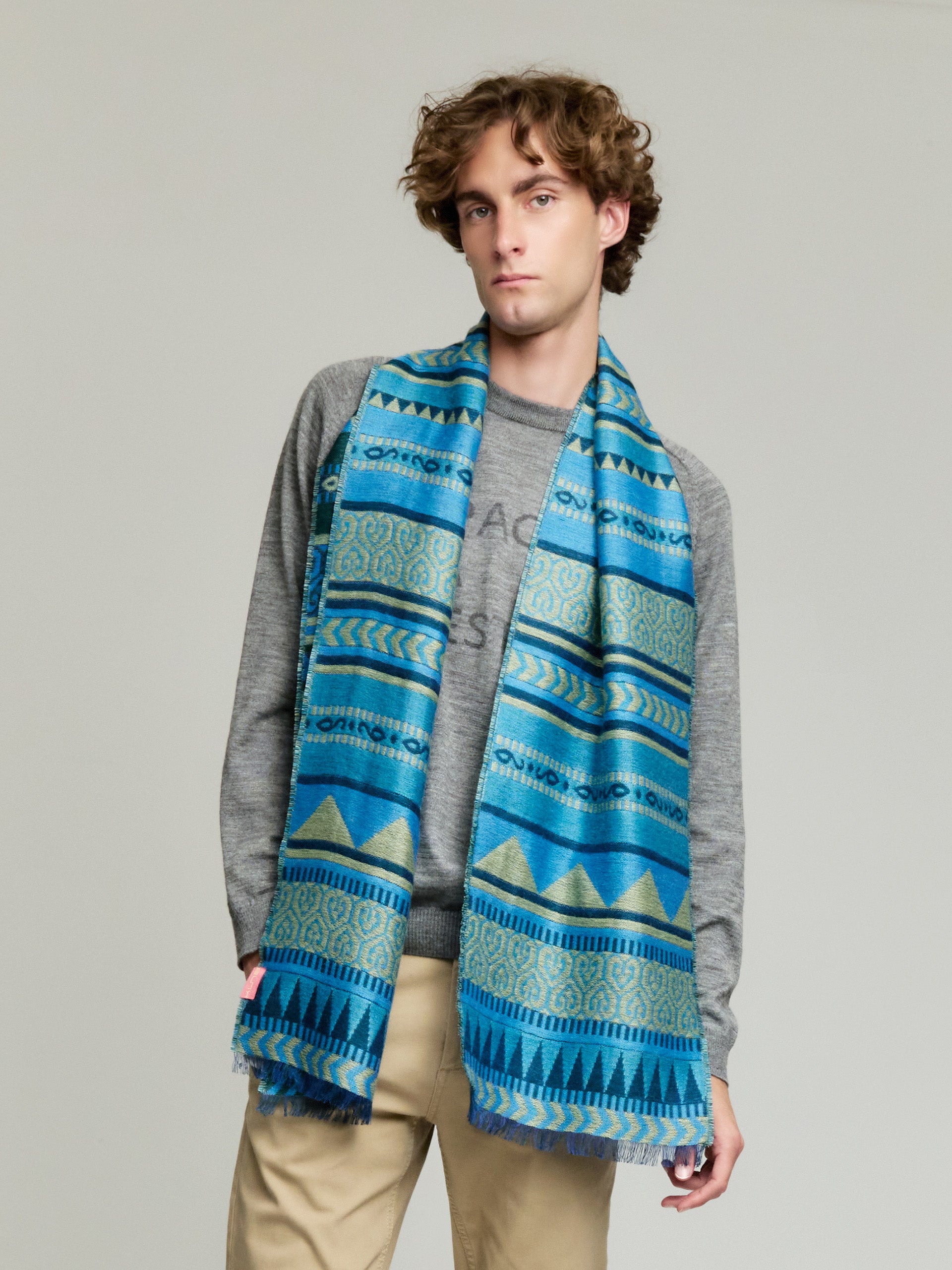 Immerse yourself in a captivating set of designs and vibrant colors with our Yaranga scarf, made of 100% baby alpaca. This item is not only a visual delight but also a statement of style, fusing the exquisiteness of alpaca fiber with attractive patterns. | Material predominante: Baby Alpaca