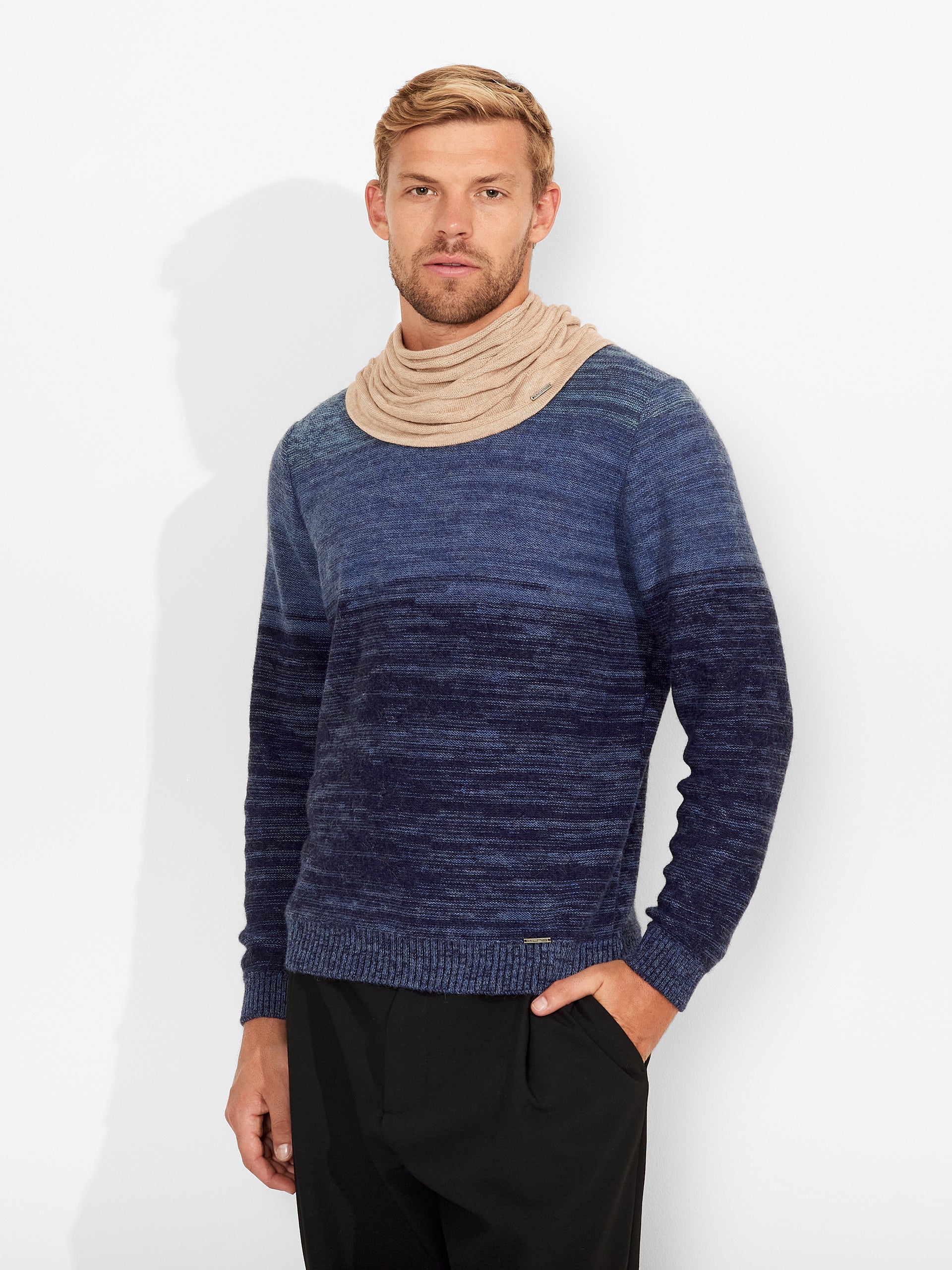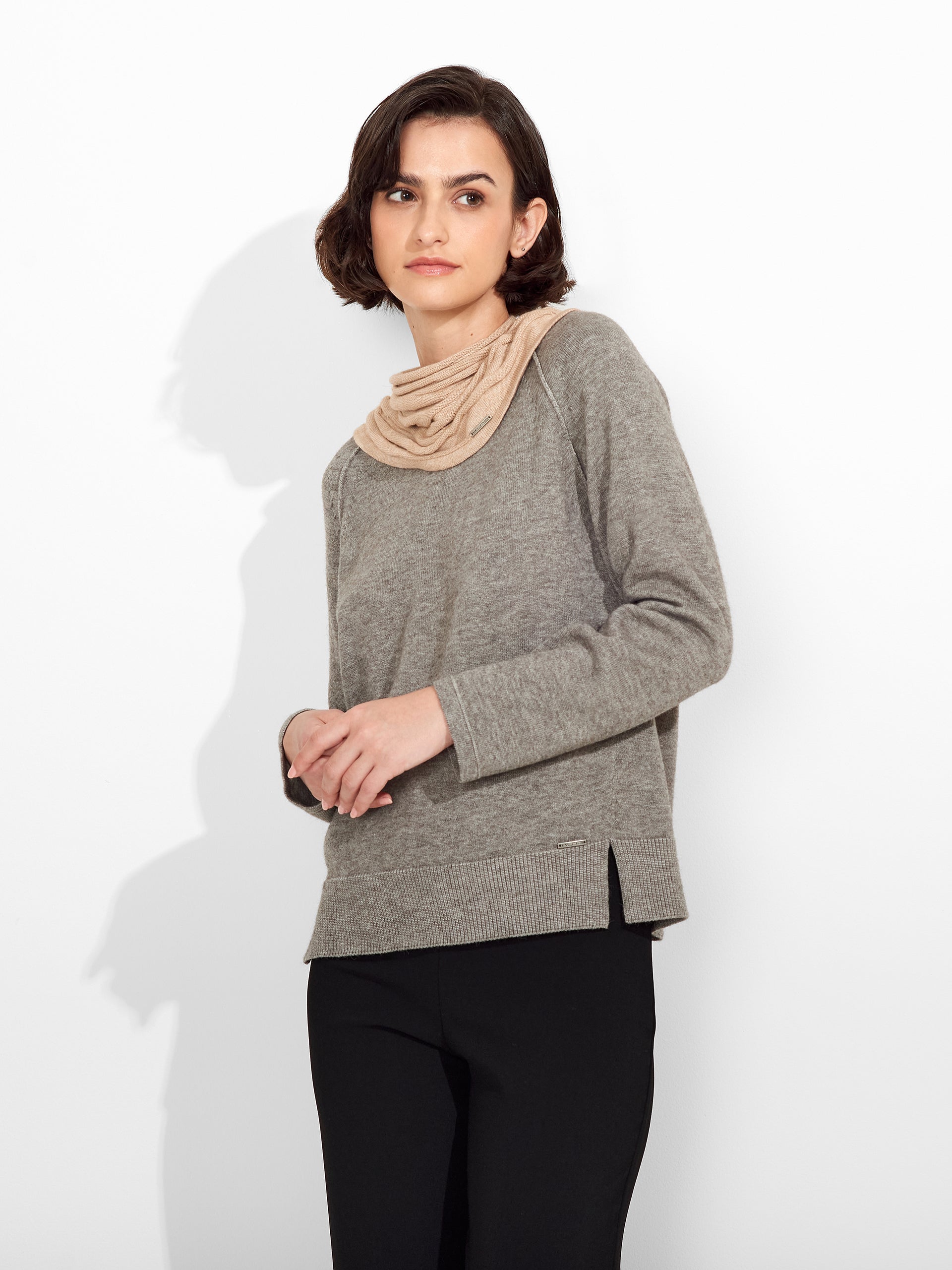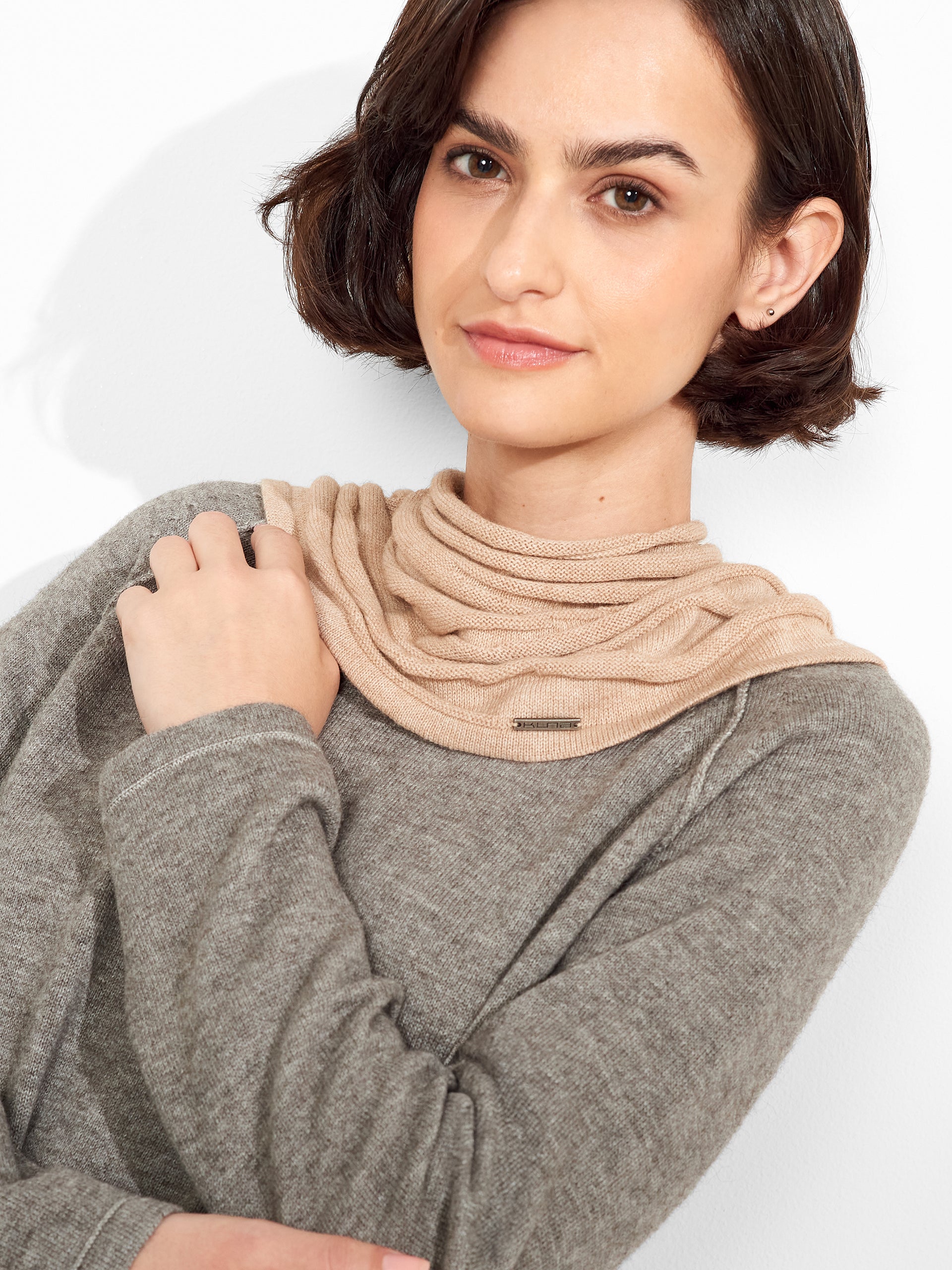 Zion Knit Neckwarmer in beige tone, featuring a structured knit with defined edges that complete its finish. Crafted from a blend of cotton and baby alpaca, it offers softness and lightness. | Predominant material: Cotton