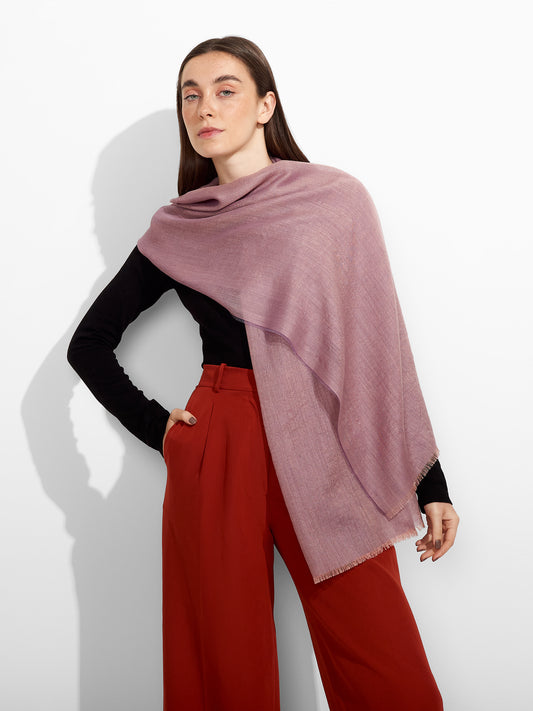 Zaina Stole in purple tone, with a subtle iridescent effect, featuring fine fringed edges. Crafted...