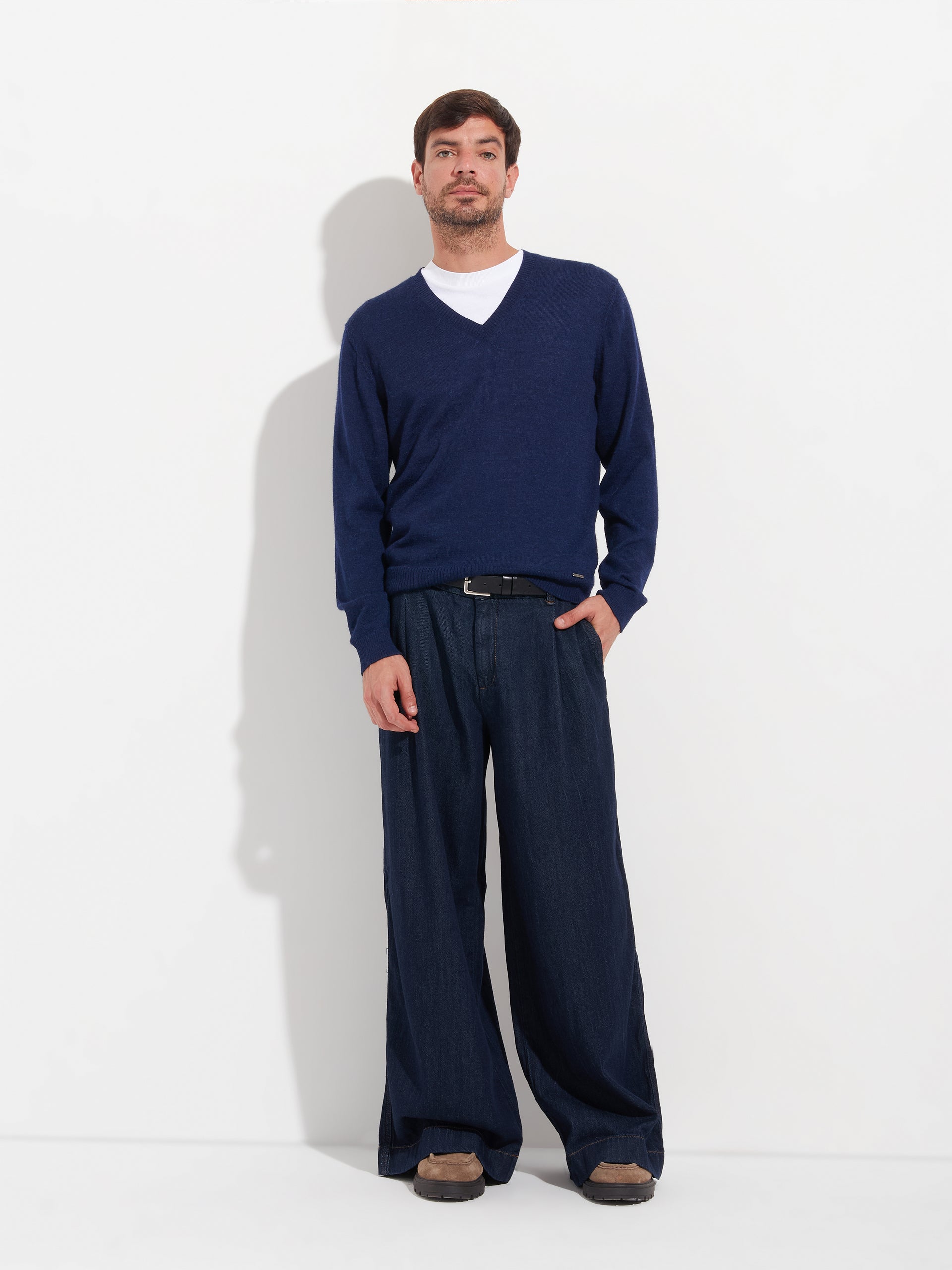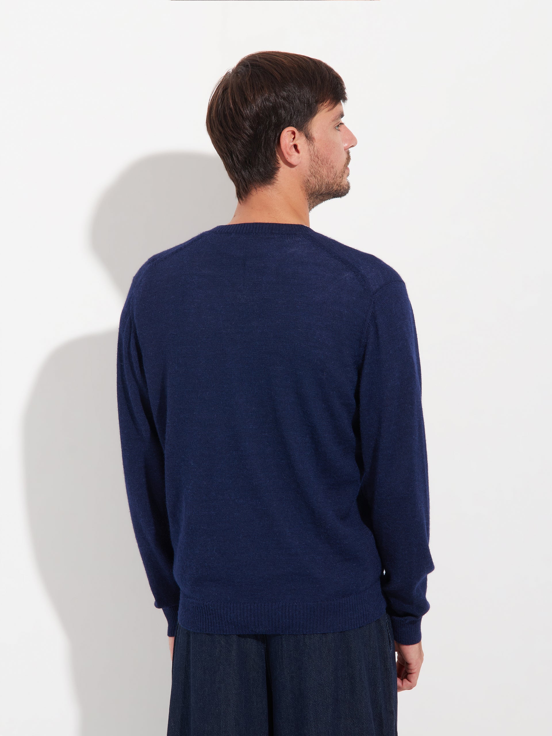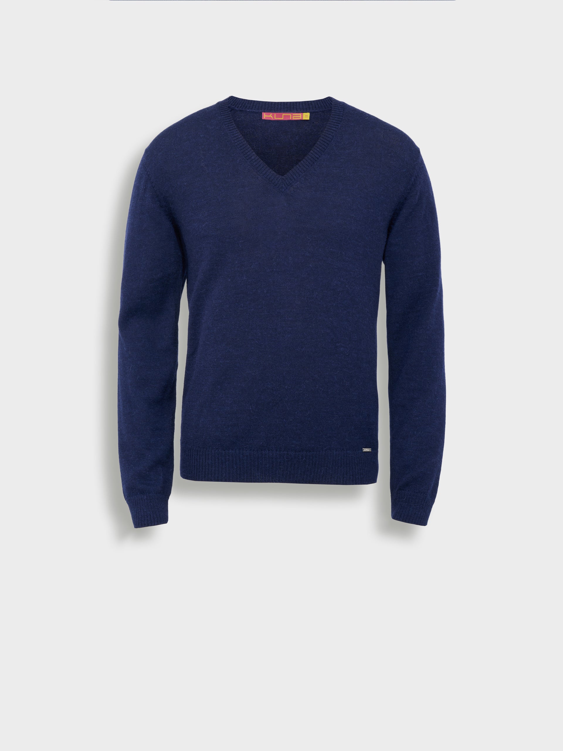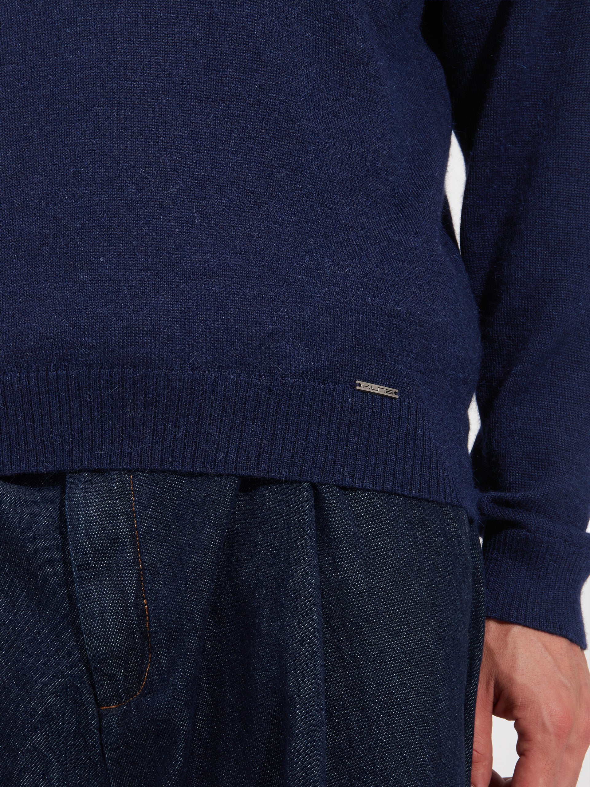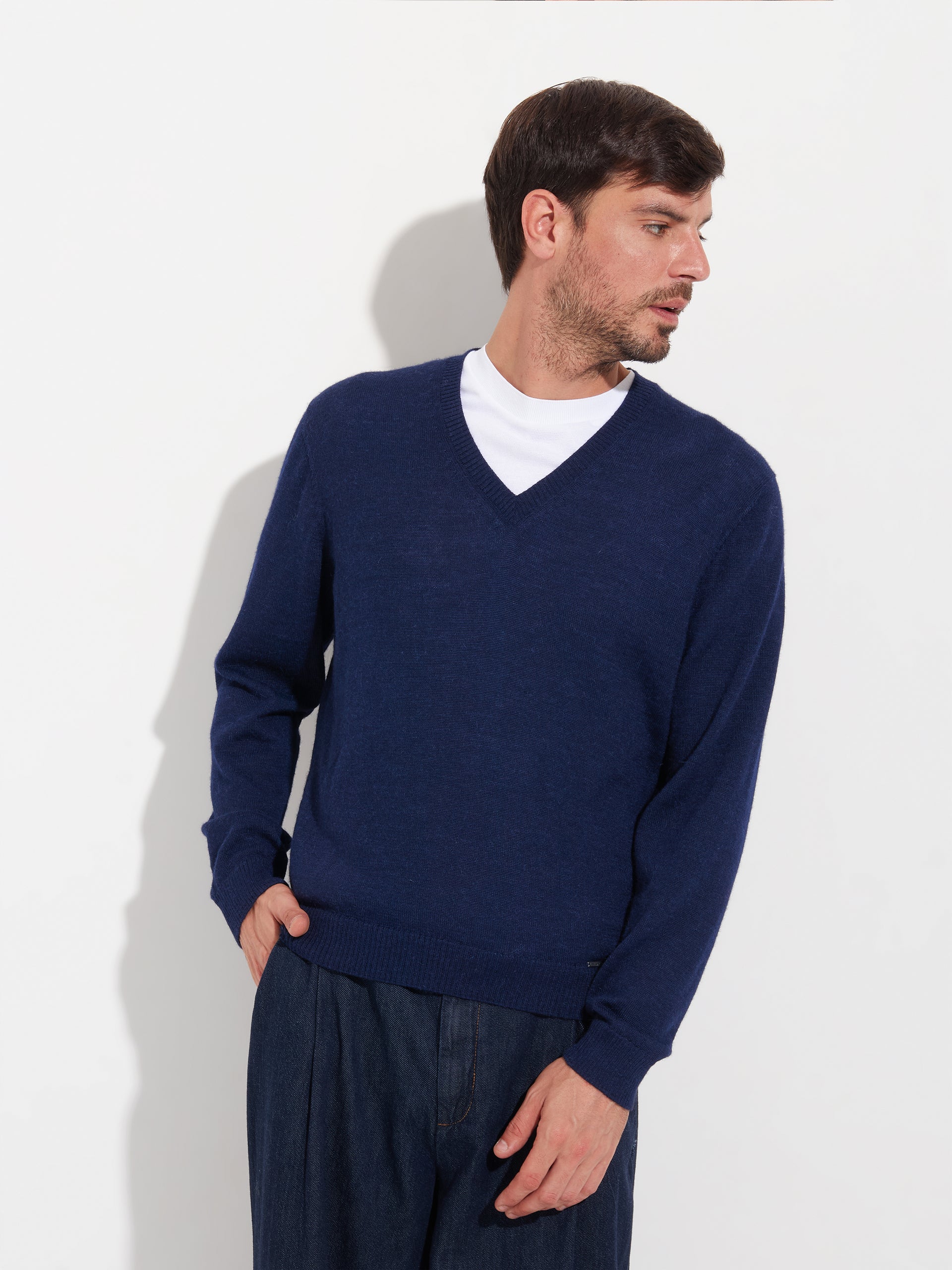 An elegant V-necked sweater with details included on the neckline. Made entirely of baby alpaca fibre, this garment is the perfect choice at any time of day.