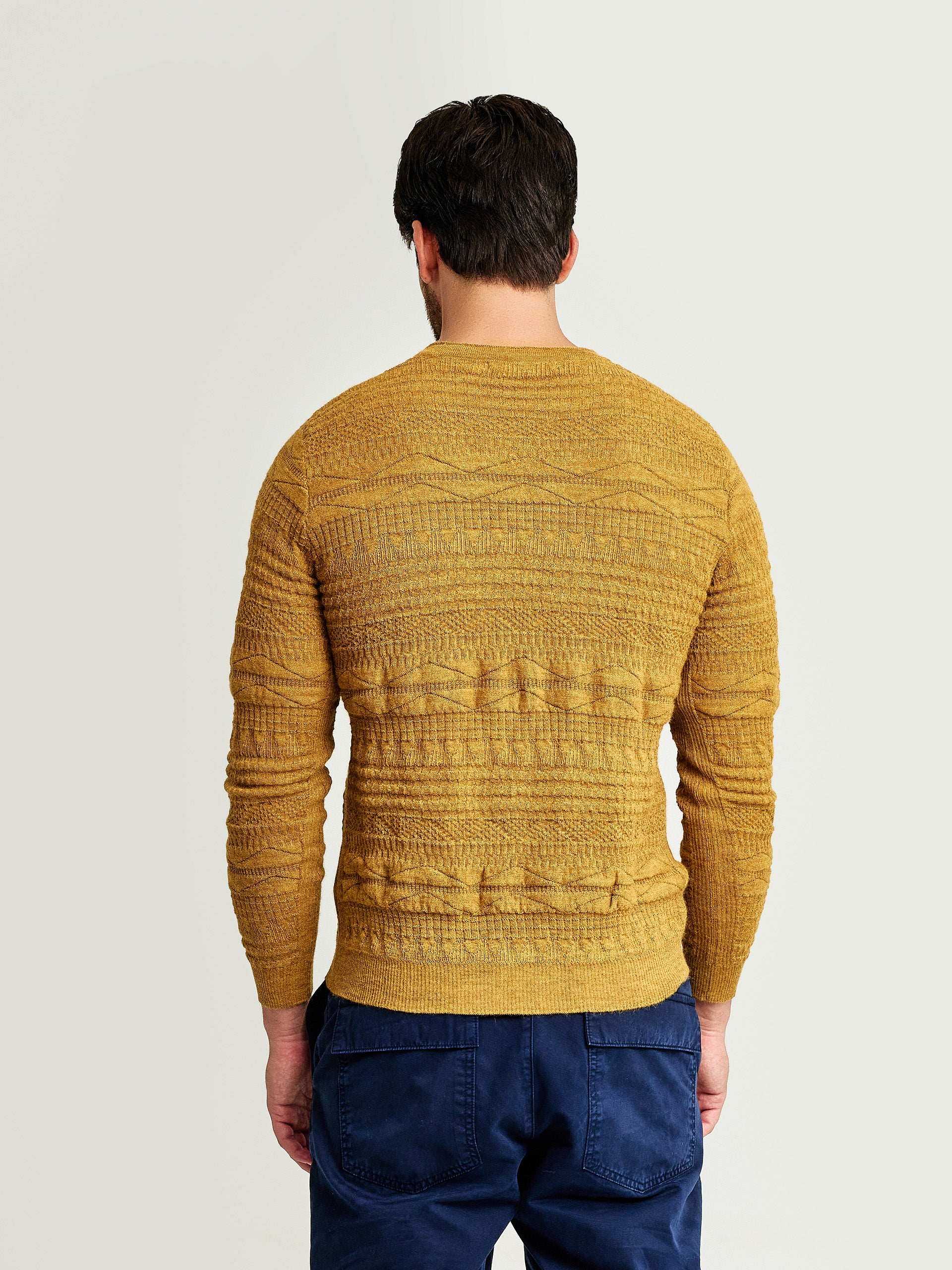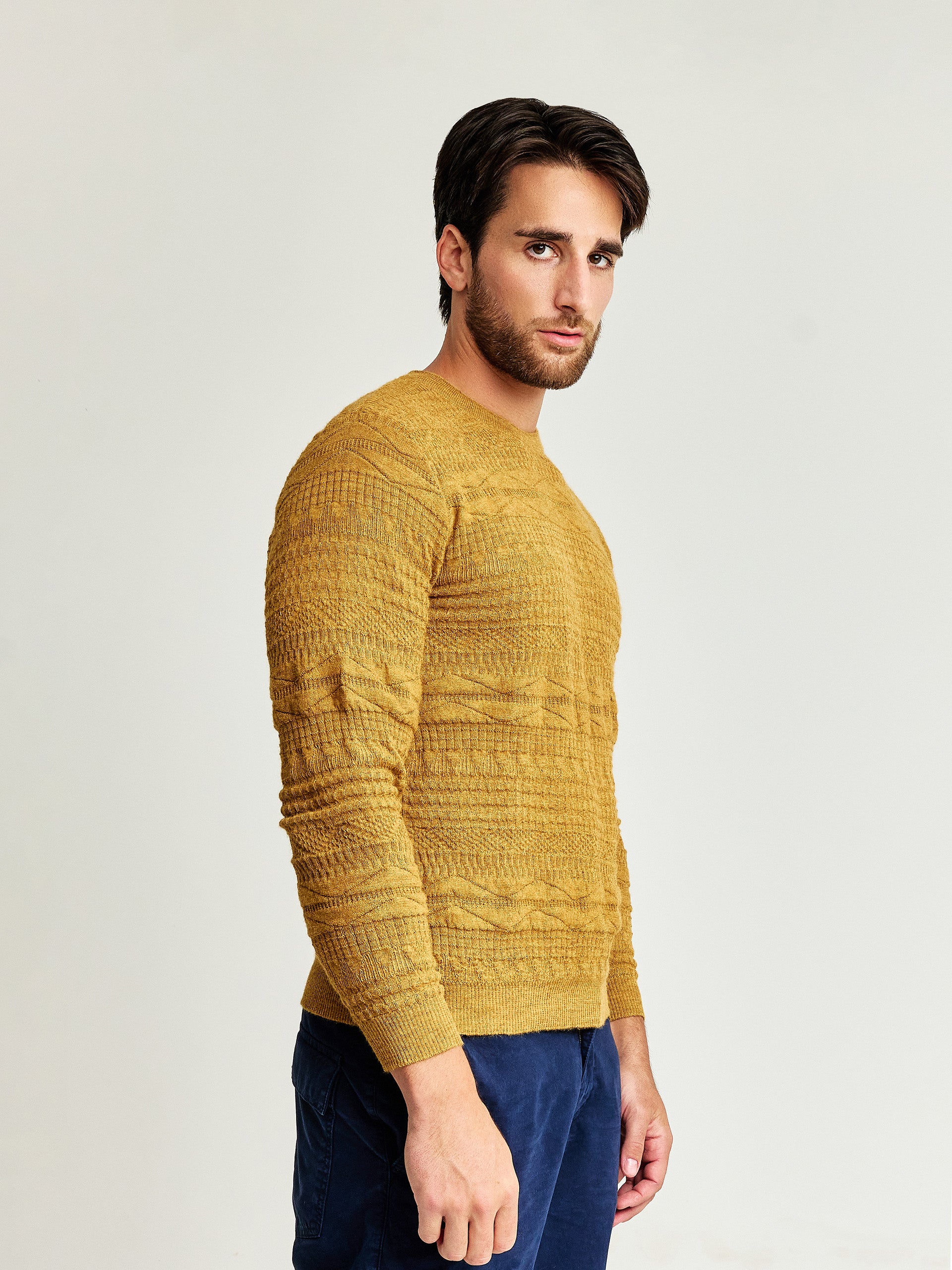 Uptown is a very particular piece, with a round neck, it is completely knitted in an ethnic Jacquard stitch that creates relief and an interesting texture. Made in 100% baby alpaca. Find this fascinating sweater in different colors very combinable and elegant.