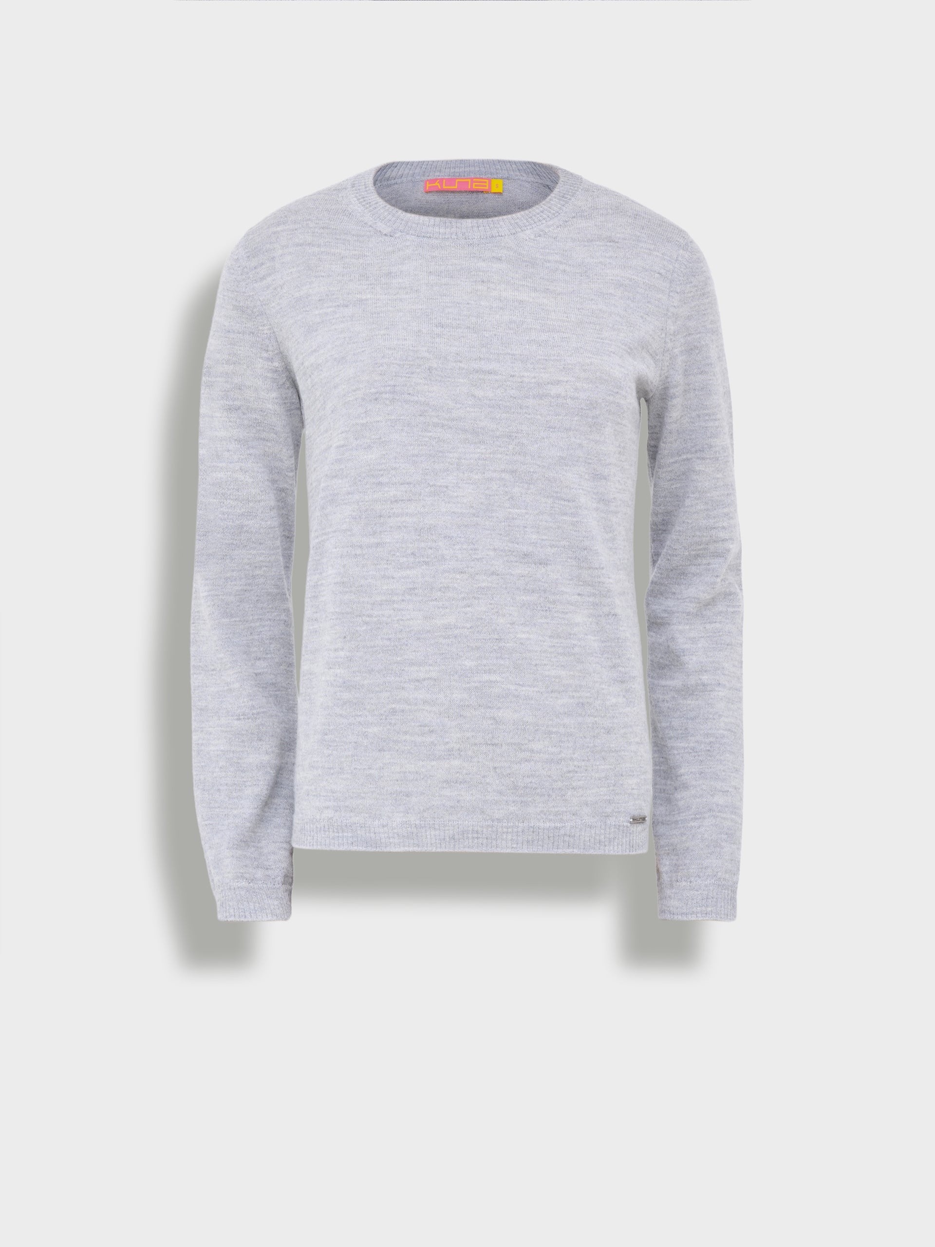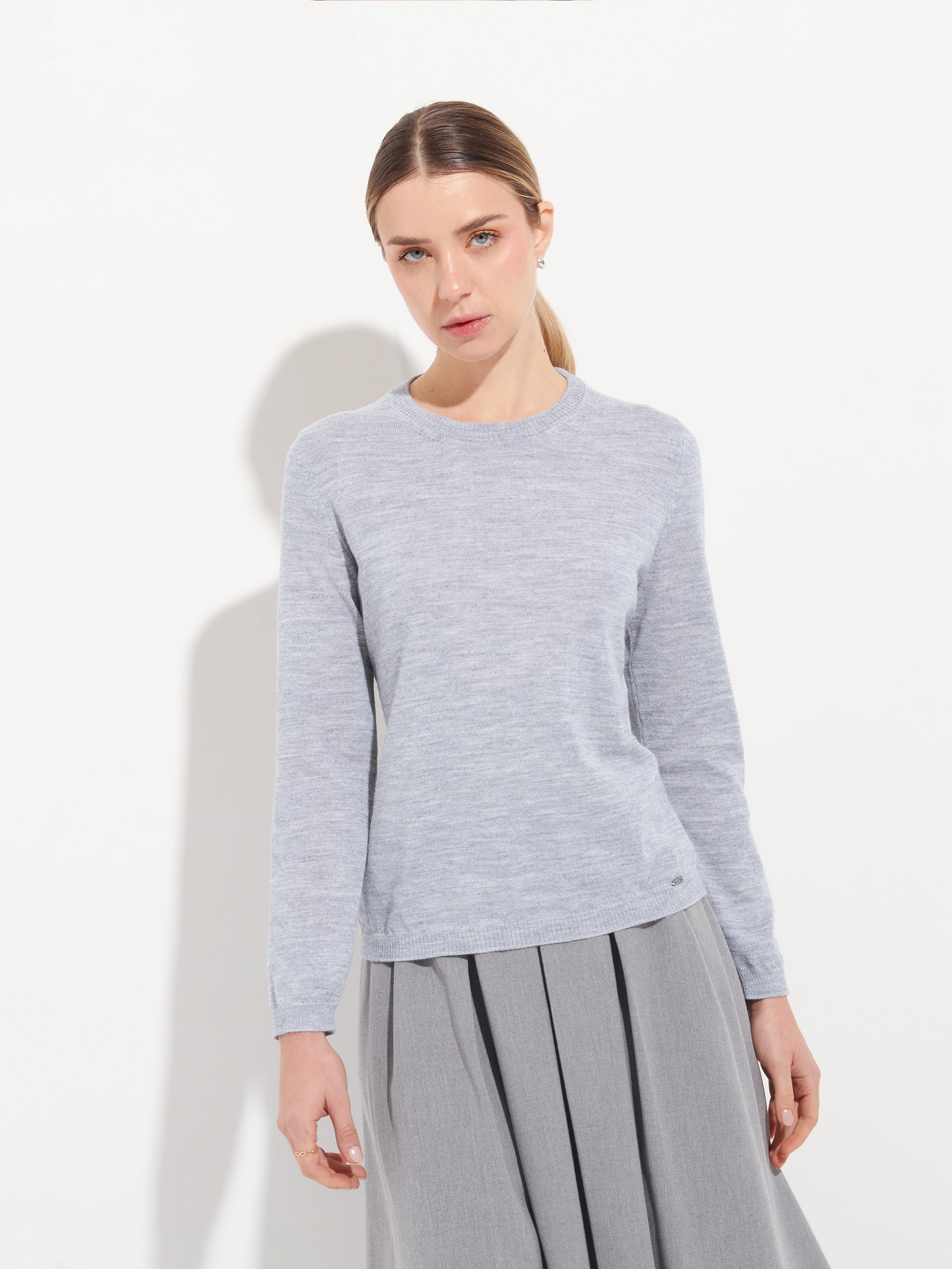 Anya sweater in gray, made of 100% baby alpaca. Its classic design incorporates ribbed cuffs and waistband for a comfortable and flattering fit. | Predominant material: Baby Alpaca