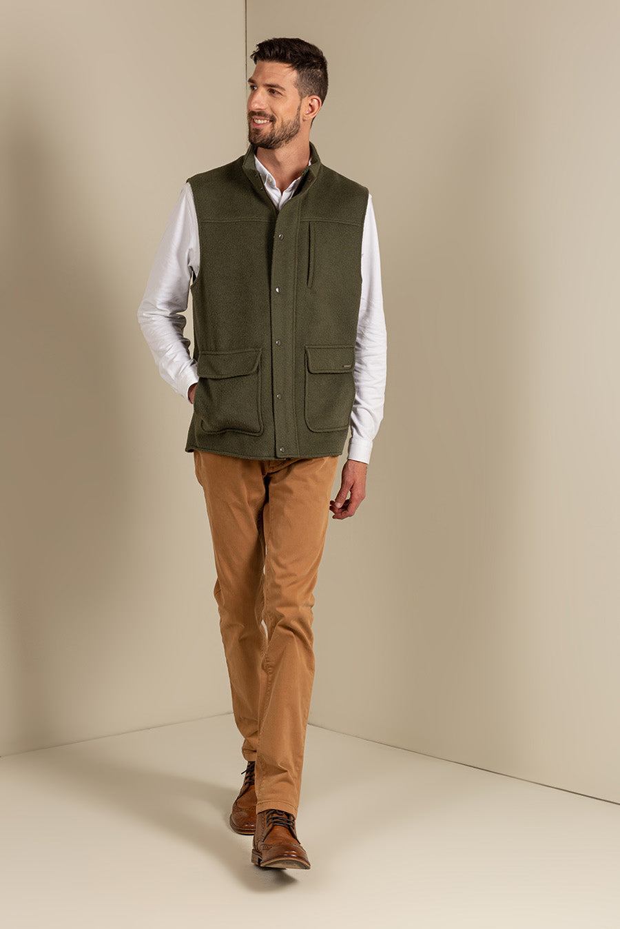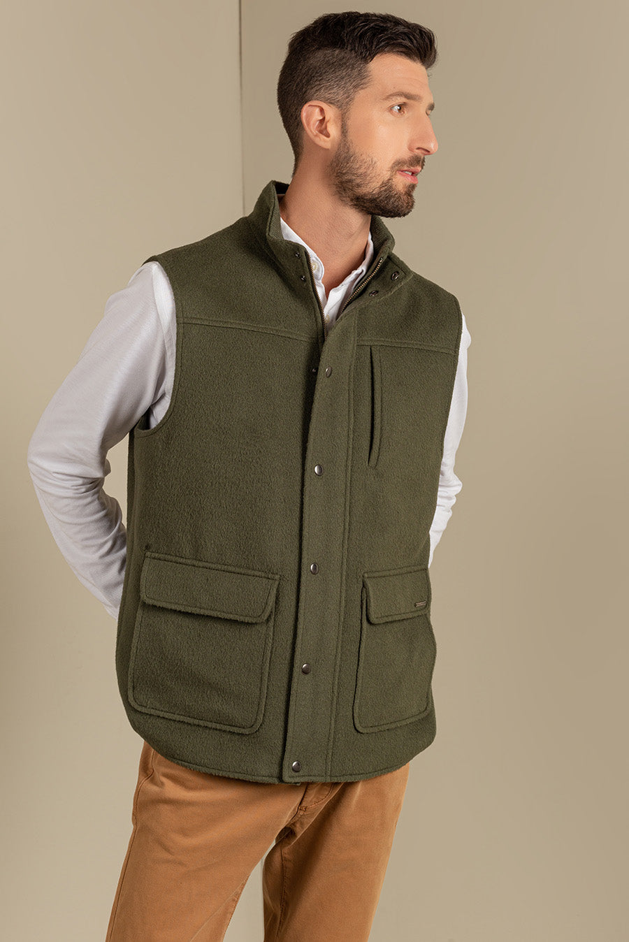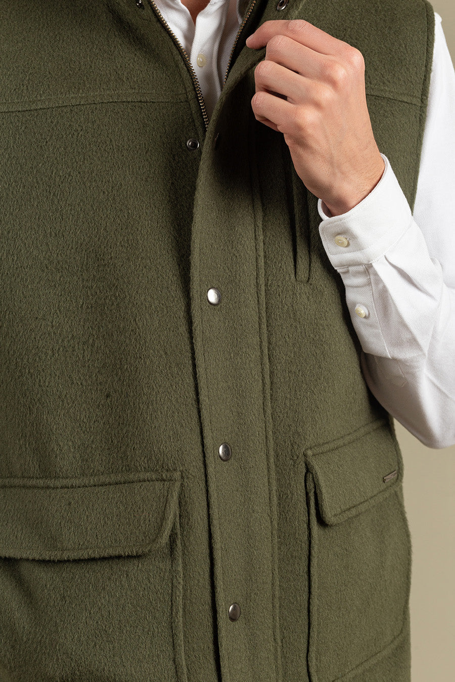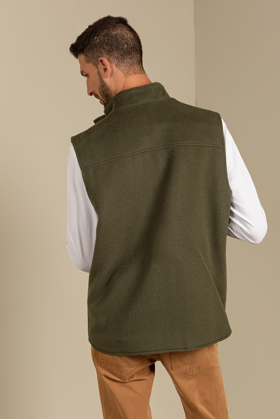 Vest made of baby alpaca and wool, with metallic trimmings that give it a special touch. Versatile garment that adds significant value to the piece, as it can be a functional and elegant addition to the closet. It stands out for the appearance of the fabric, for the cut and for the special details in the cross and pockets.