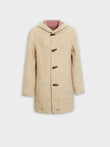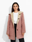 Alaia Coat in pink tone, featuring a wrap silhouette with a hood, polyester horn-type buttons, and front patch pockets. Its reversible design makes it versatile. Crafted from a blend of baby alpaca and wool. | Predominant material: Baby Alpaca