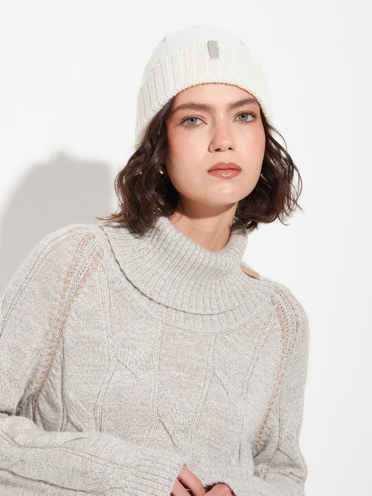 Apostrofe cap in white, made of 100% baby alpaca. This knitted accessory stands out for...