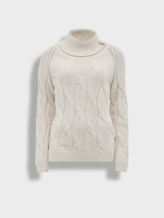 Bergamo sweater in beige, with a turtleneck and intarsia knit design. Made from 100% RAS...