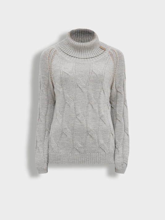 Bettina sweater in gray, with a turtleneck and cable knit. Made from 100% RAS baby...