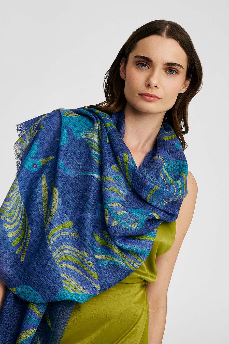 Our Wallon shawl comes in two splendid colors to brighten your days this season. The combination of silk and baby alpaca make this a fresh and light accessory, perfect to complement your look and bring color to your summer days. | Predominant material: Baby Alpaca
