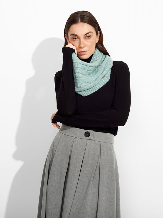Zada Knit Neckwarmer in light blue tone, designed in solid color with horizontal sections featuring...