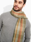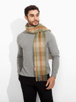Zamery Scarf in green tone, featuring a large checkered pattern with a subtle gradient effect. It showcases fine fringed edges. Crafted from baby alpaca, it offers warmth and exceptional softness. | Predominant material: Baby Alpaca