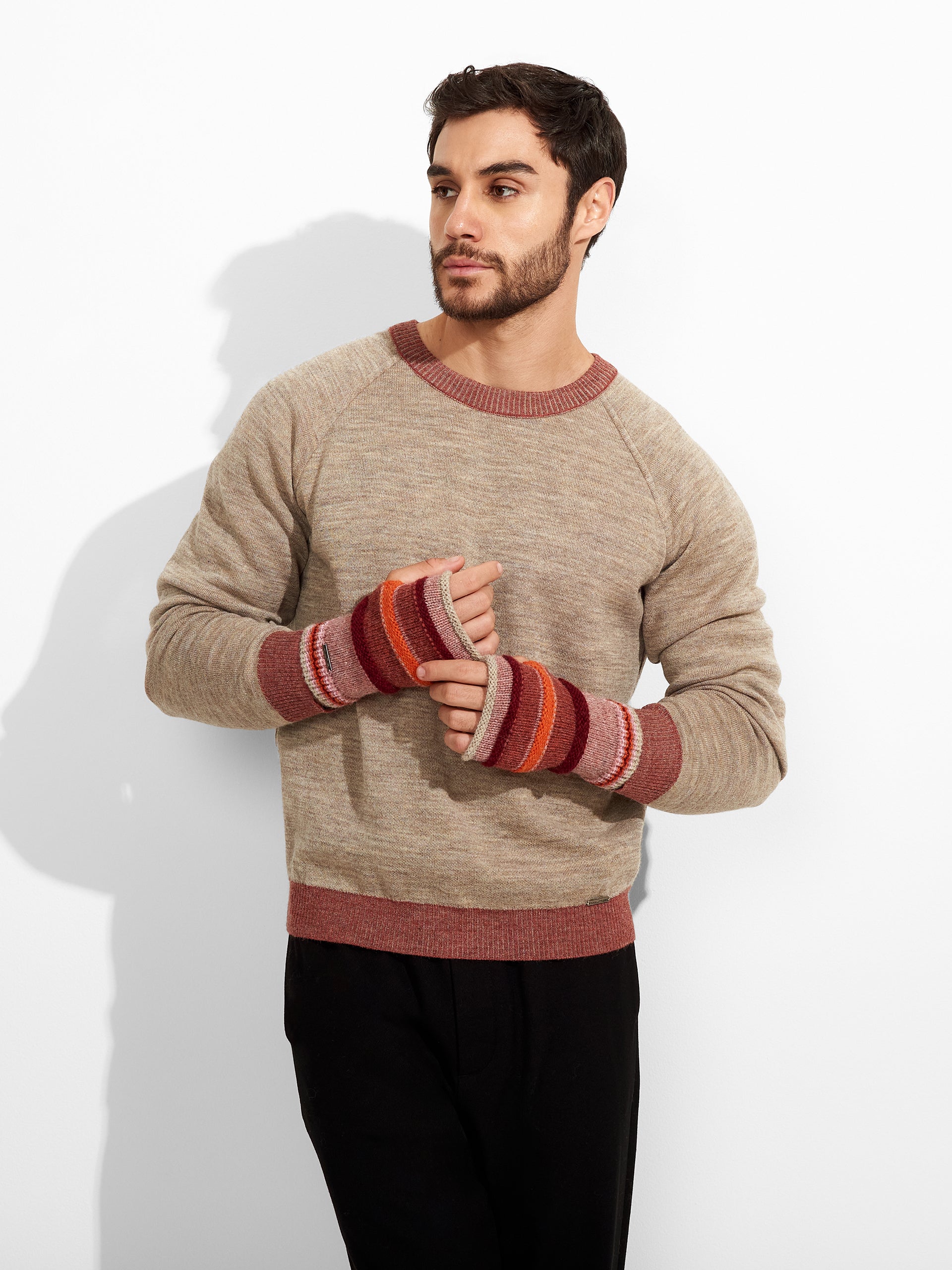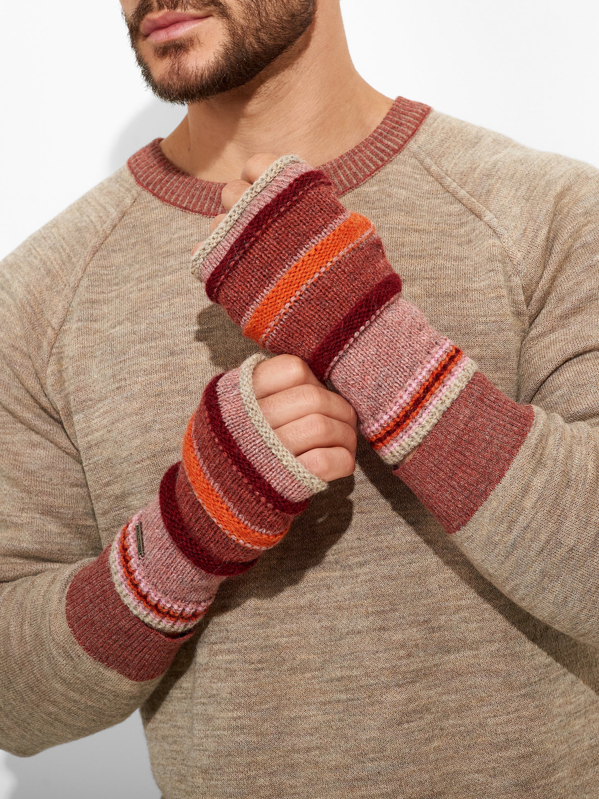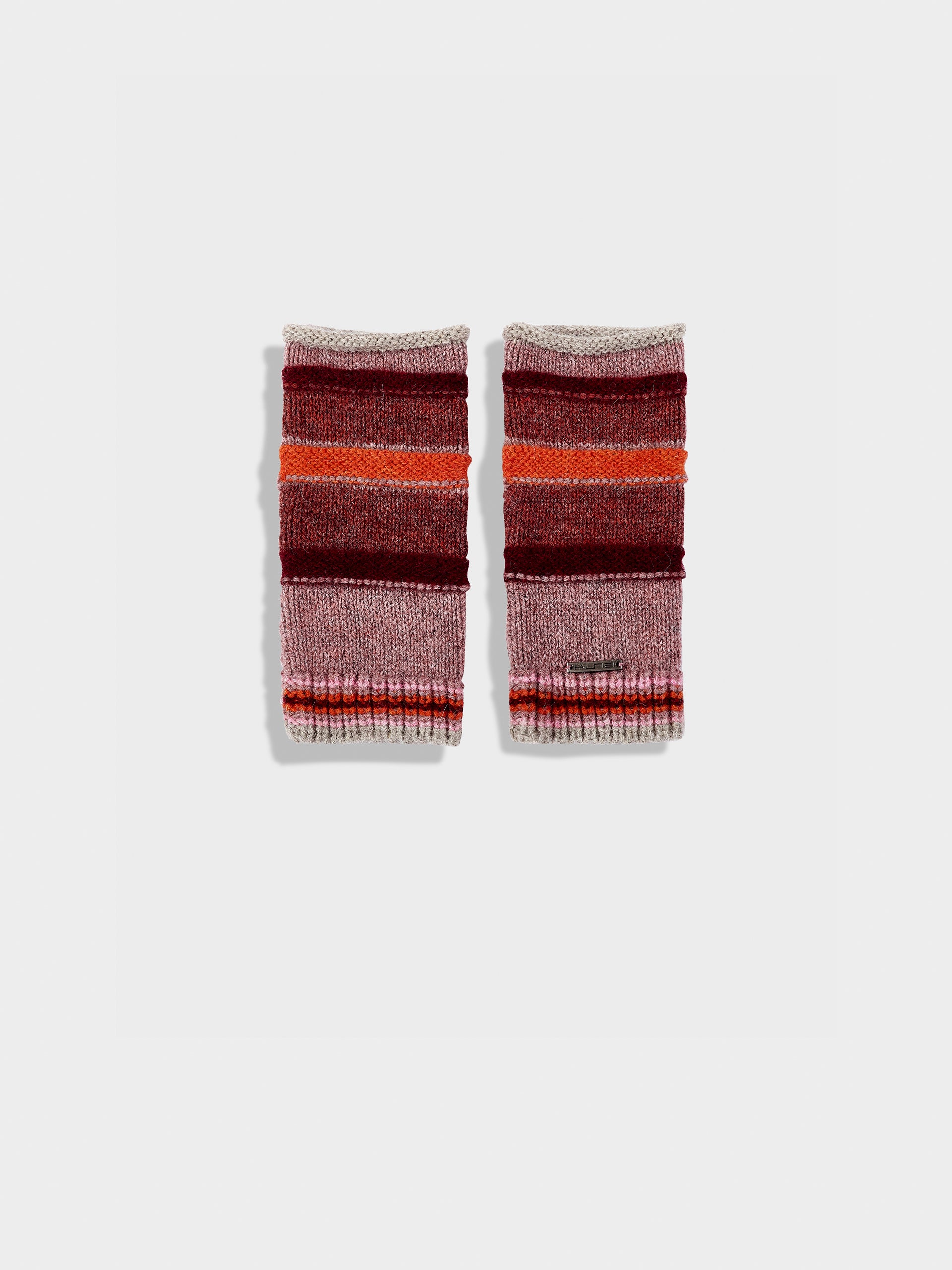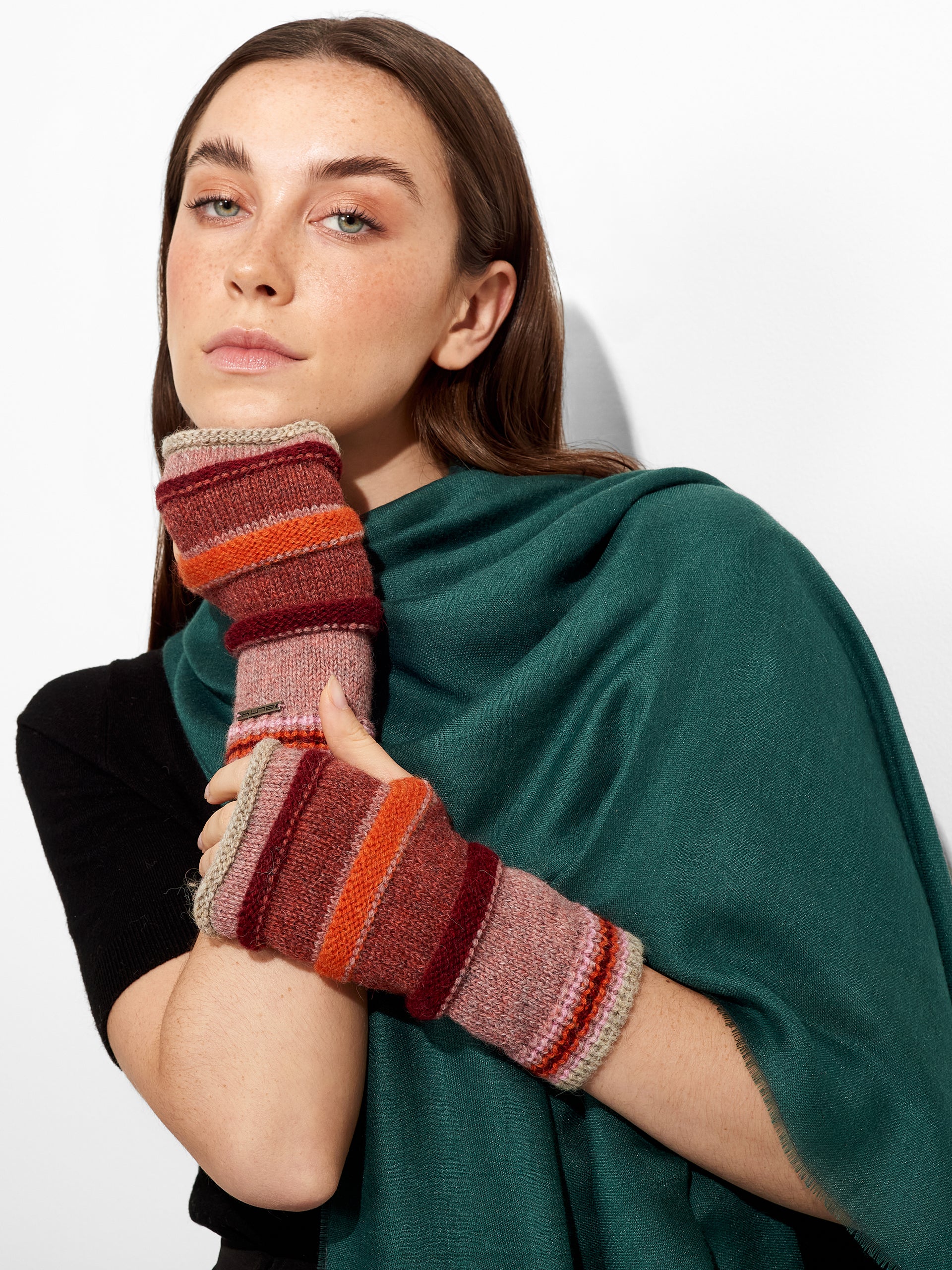 Zanni Gloves in pink tone, featuring horizontal stripes that add a distinctive style. They offer a snug fit. Crafted from baby alpaca, they provide softness, warmth, and comfort. | Predominant material: Baby Alpaca