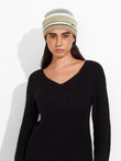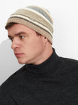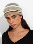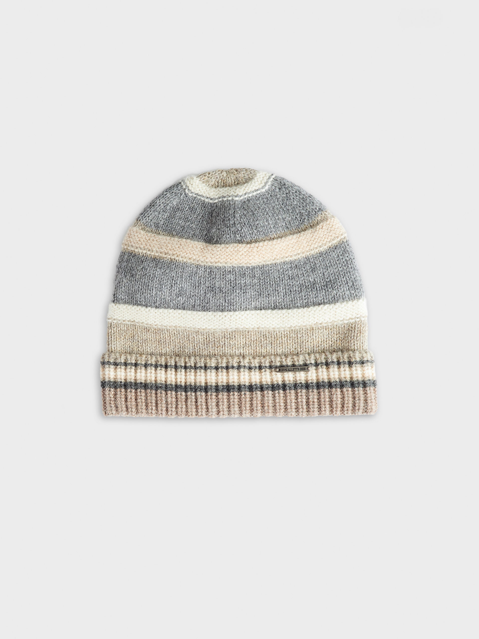 Zanni Hat in beige tone, featuring horizontal stripes that add a distinctive style. It offers a snug fit. Crafted from baby alpaca, it provides softness, warmth, and comfort. | Predominant material: Baby Alpaca