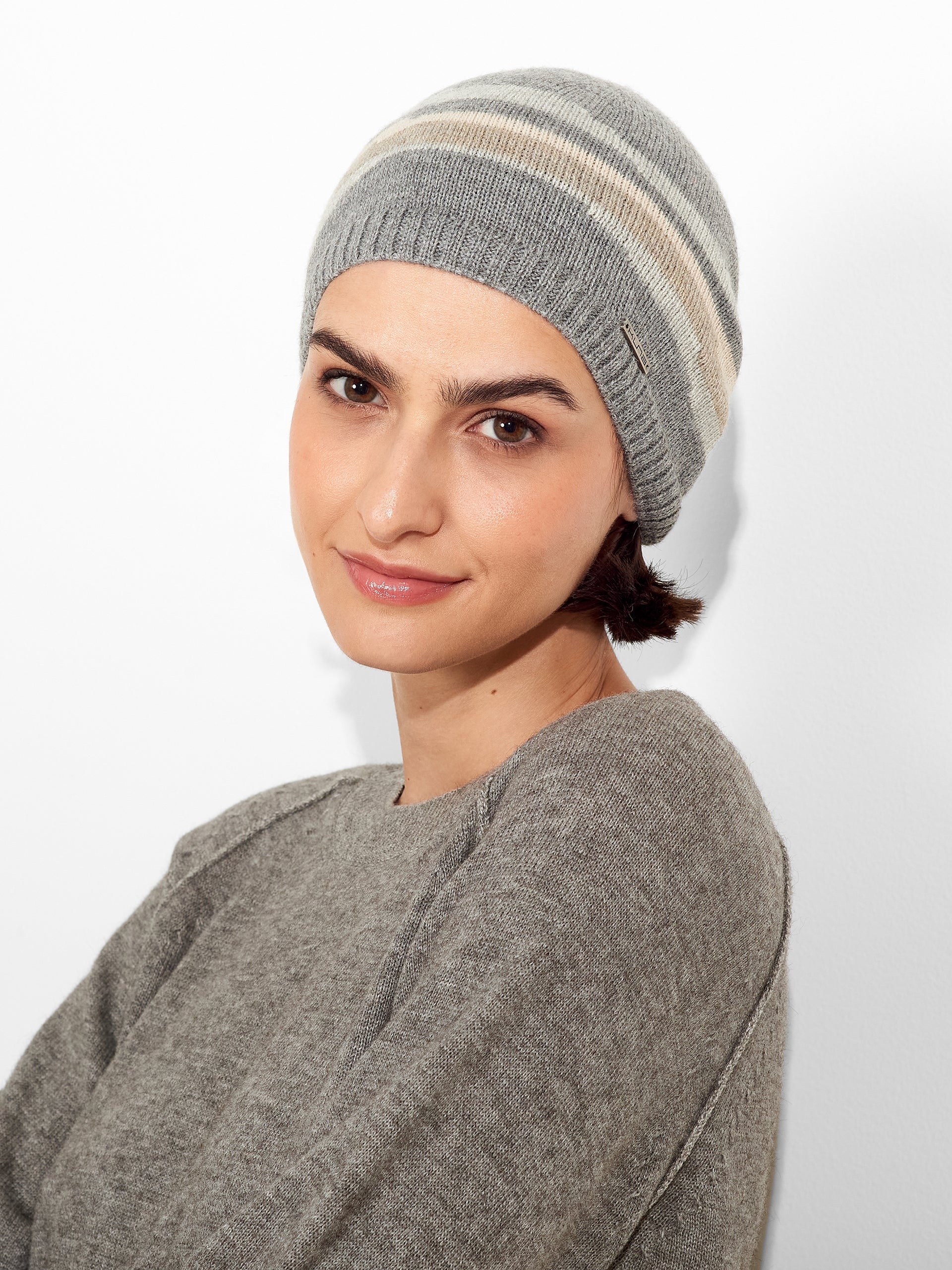 Zar Hat in gray tone, knitted in a textured stitch with a smoother, more uniform finish. Its design fits comfortably on the head. Crafted from baby alpaca, it offers softness and warmth. | Predominant material: Baby Alpaca