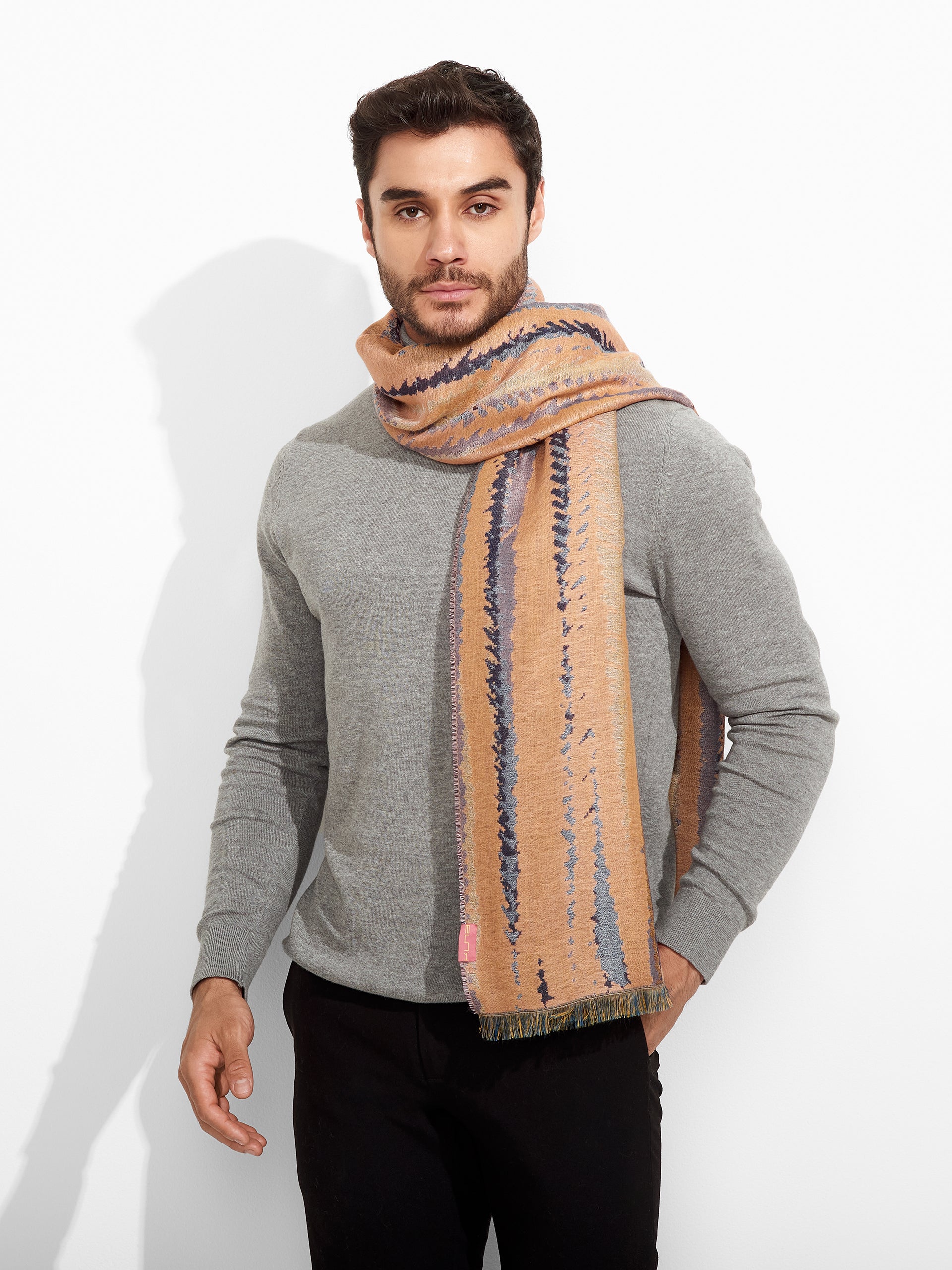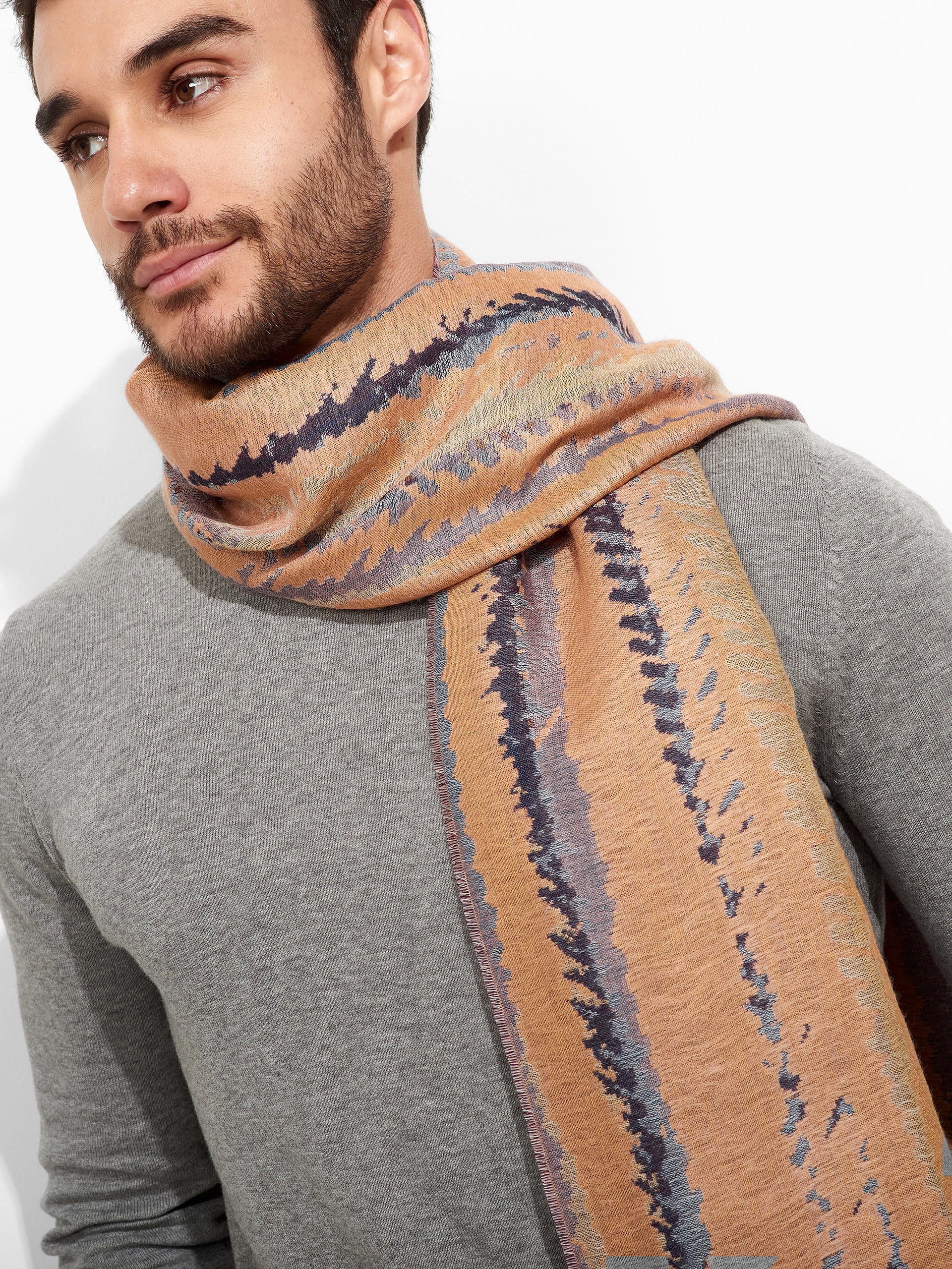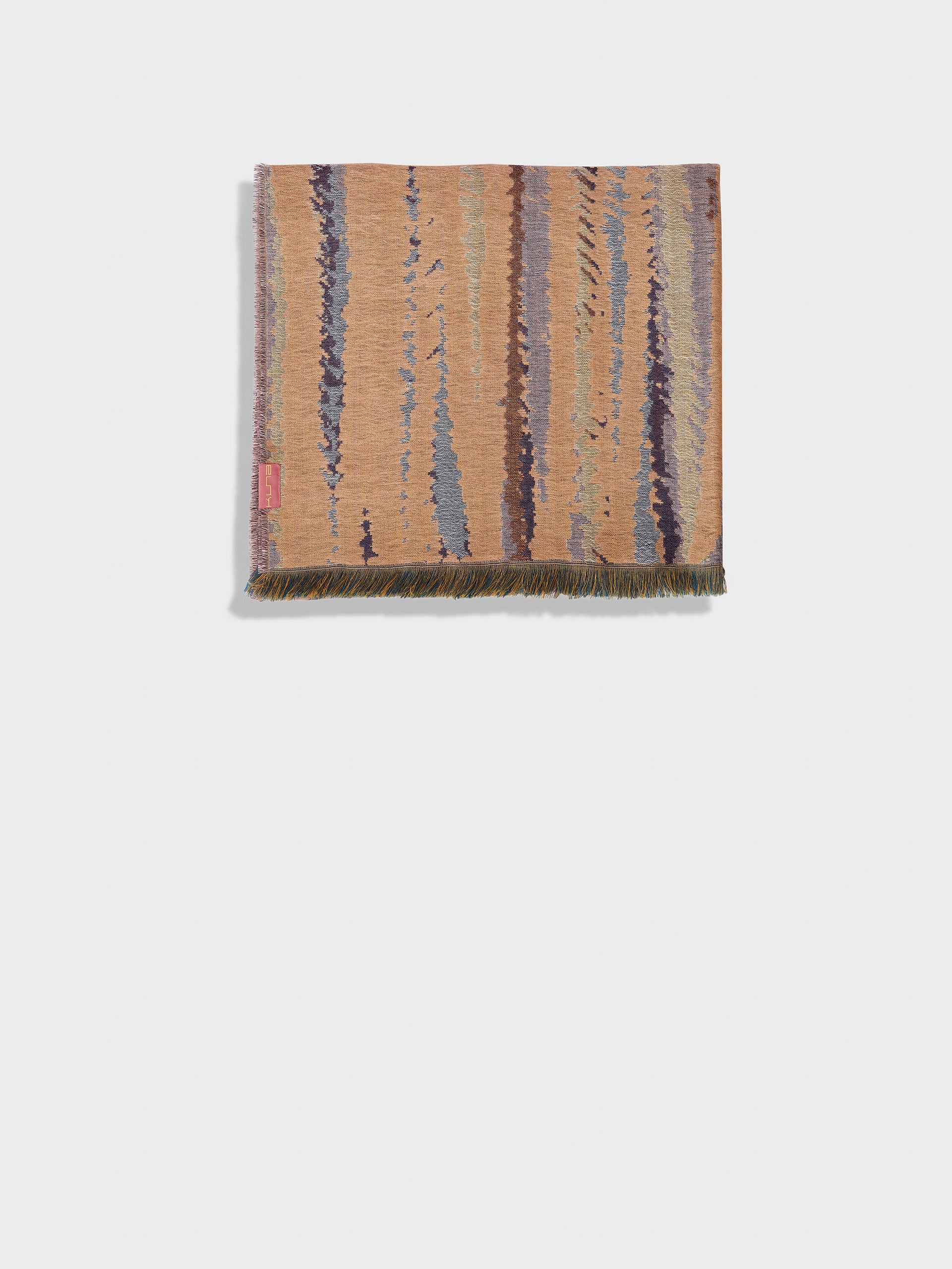 Zidny Stole in multicolor, featuring a jacquard weave with an irregular line design and fine fringed edges that complete its finish. Crafted from baby alpaca and silk. | Predominant material: Baby Alpaca